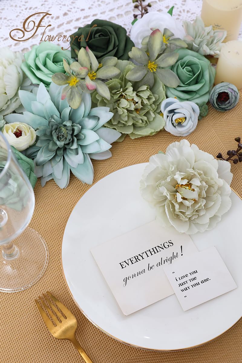 - ♔GREEN ARTIFICIAL FLOWERS COMBO-A total of 24pcs flowers. Our flower set contains peonies, roses, dahlias, chrysanthemum flowers and other accessories. It does not come with pre-arranged leaves, allowing you to customize the greenery according to your preferences. Add your favorite foliage to complete the look. All comes in a very cute box, easy giftable item.