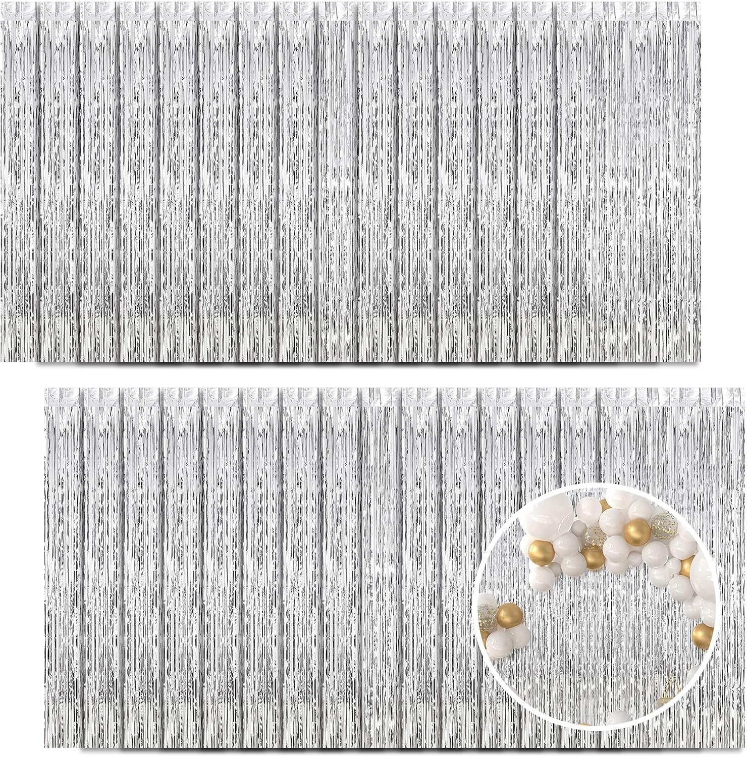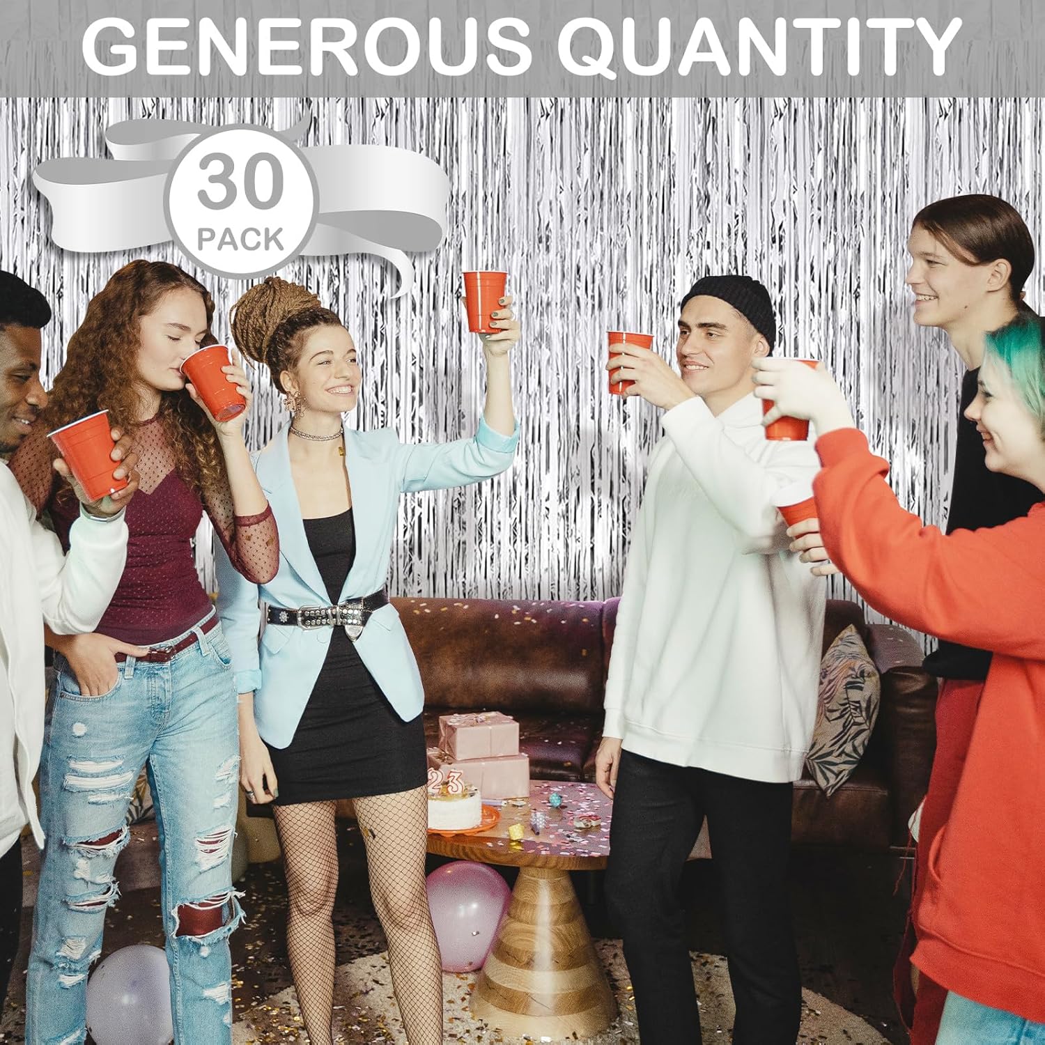 30 Pack Silver Foil Fringe Curtain Backdrop, 3.3x8.2 Feet Metallic Tinsel Streamer Curtains Photo Booth Props for Birthday/Wedding/Bachelorette/Baby Shower/Christmas/New Year/Disco Party Decorations