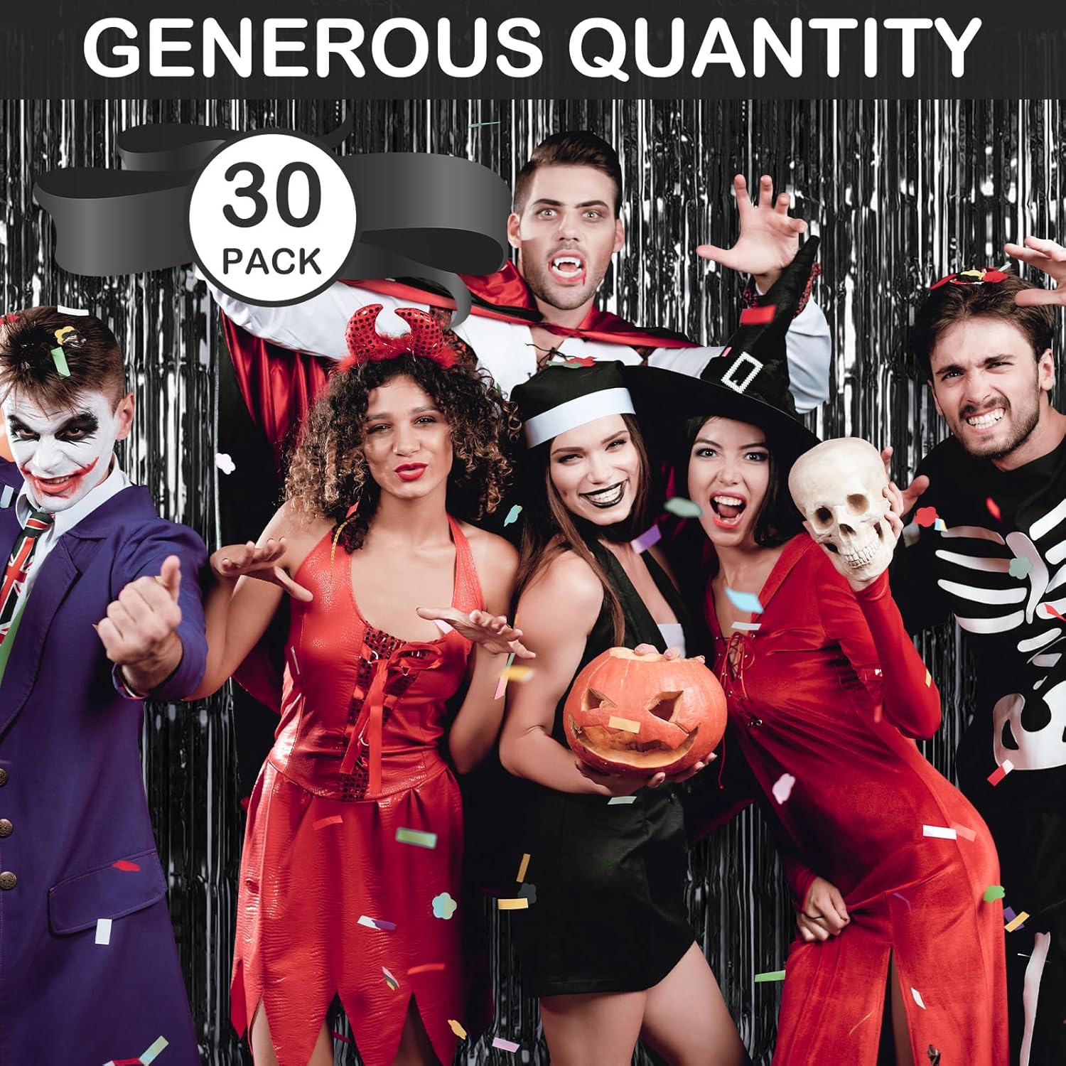 30 Pack Black Foil Fringe Curtain Backdrop, 3.3x8.2 Feet Metallic Tinsel Streamer Curtains Photo Booth Props for Birthday/Graduation/Bachelorette/Halloween/Christmas/New Year/Disco Party Decorations