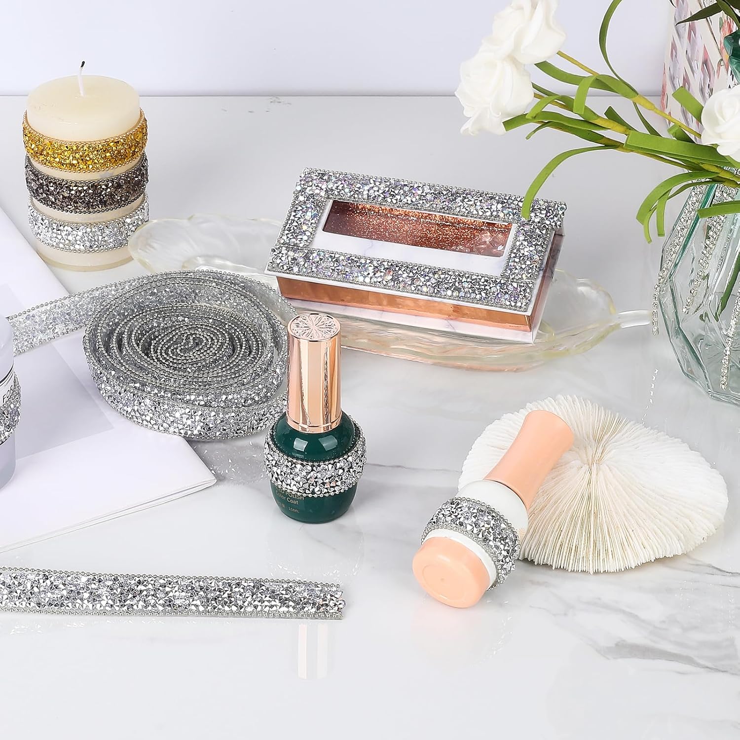 - Silver Rhinestone Ribbon: 1 roll of self-adhesive rhinestone ribbon Sticker, approx 6 yards in length, 1cm/0.4inch in width. (PACKAGE CONTENT)