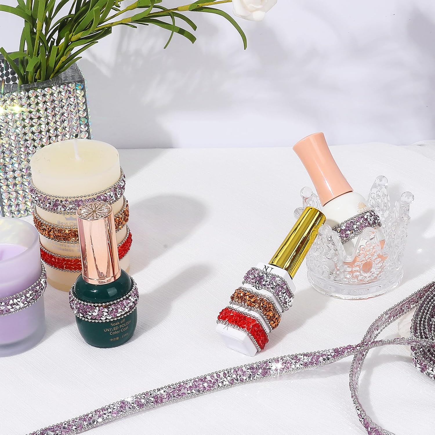 - Purple Rhinestone Ribbon: 1 roll of self-adhesive rhinestone ribbon Sticker, approx 3 yards in length, 1cm/0.4inch in width. (PACKAGE CONTENT)