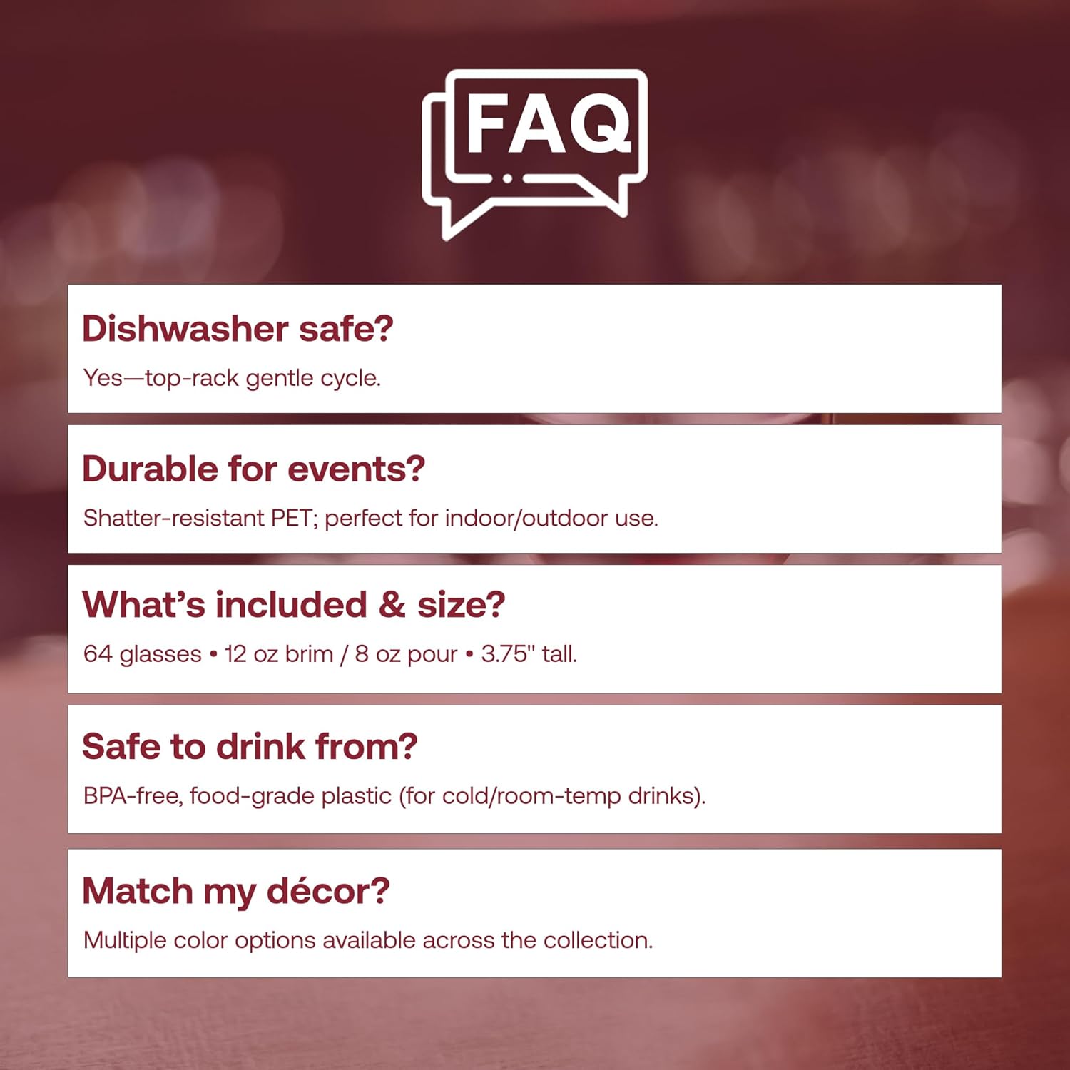 - VALUE PACK FOR LARGE EVENTS – With 64 plastic stemless wine glasses in each pack, this bulk set offers a stylish, affordable solution for all your guests, ideal for large celebrations.