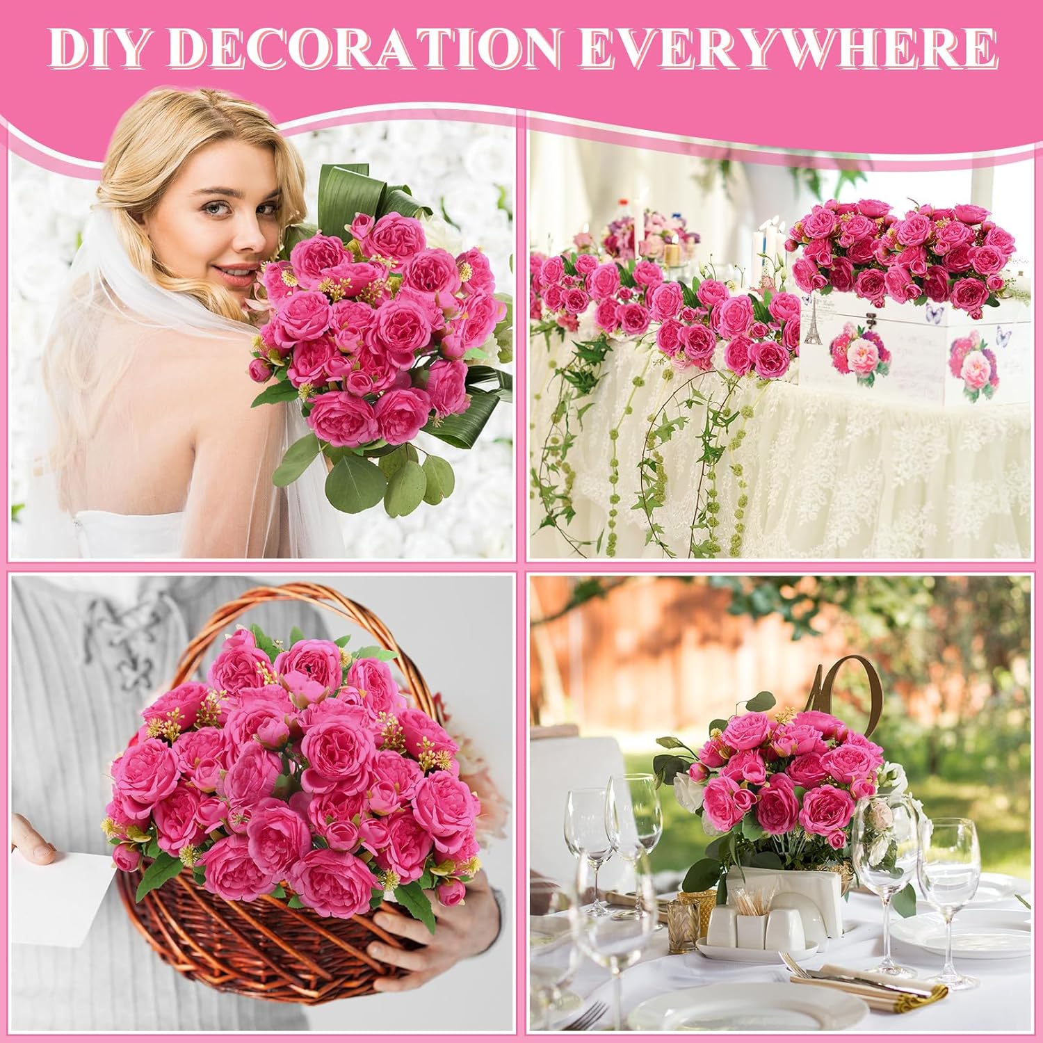8 Bundles Artificial Peonies Flowers Boho Faux Flowers Arrangements Artificial Centerpiece Spring Bouquet Floral Wedding Decoration for Vase (Hot Pink)