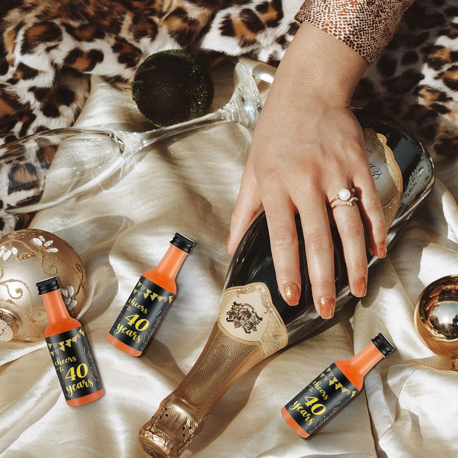 Vesici 50 Pack Mini Liquor Bottles 1.7oz Shot Mini Wine and Champagne Bottle Birthday Sticker with 2 Funnels Birthday Party Favor for Adult Guest Women Men Anniversary Celebration(Cheers to 40 Years)