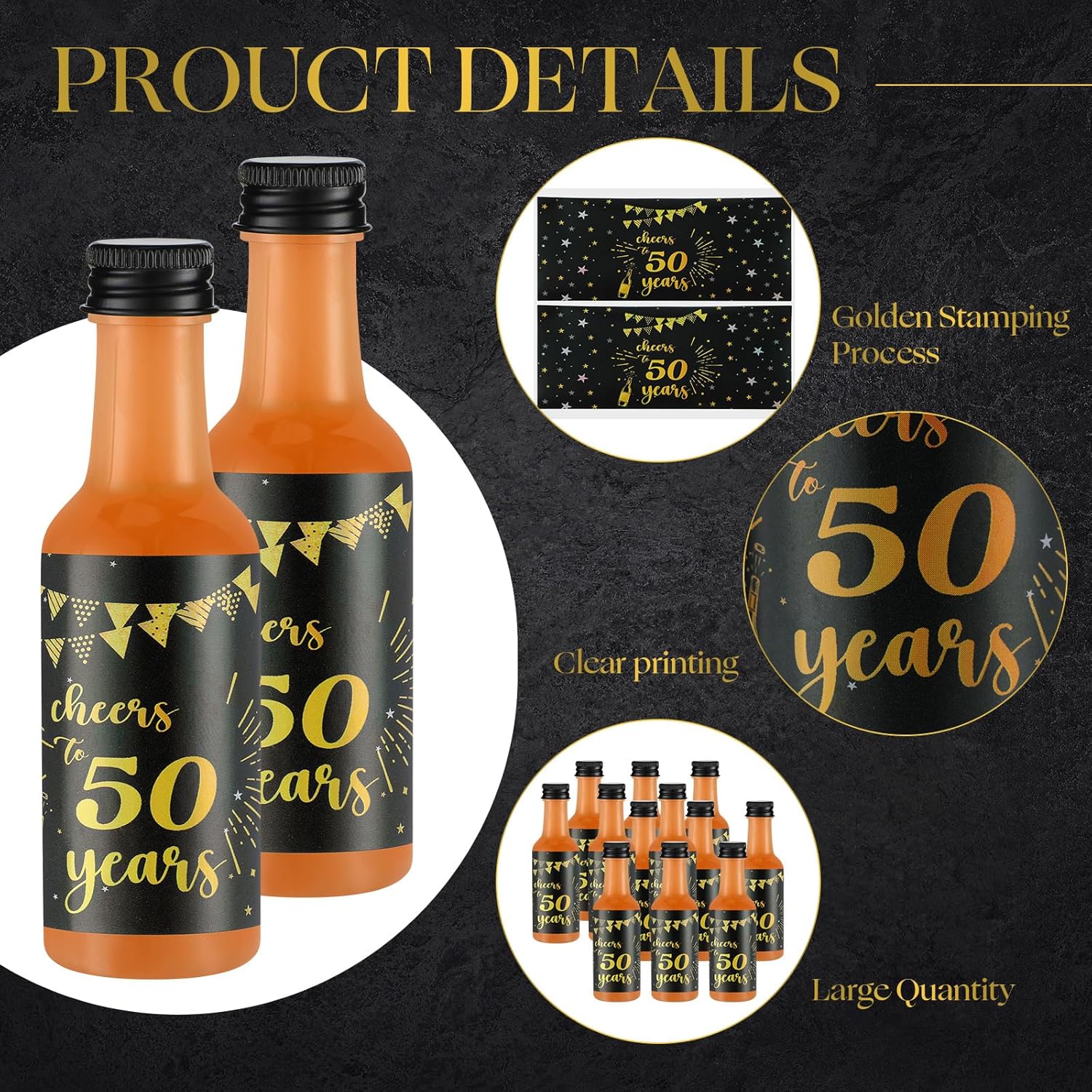 - Reliable Material: the mini alcohol bottles are constructed with quality PET material, ensuring sturdiness and high transparency, while the birthday stickers are made from PVC; This combination ensures that the bottles are robust, while the stickers are scratch and water resistant, lightweight and not easy to break and fade, ensuring longevity