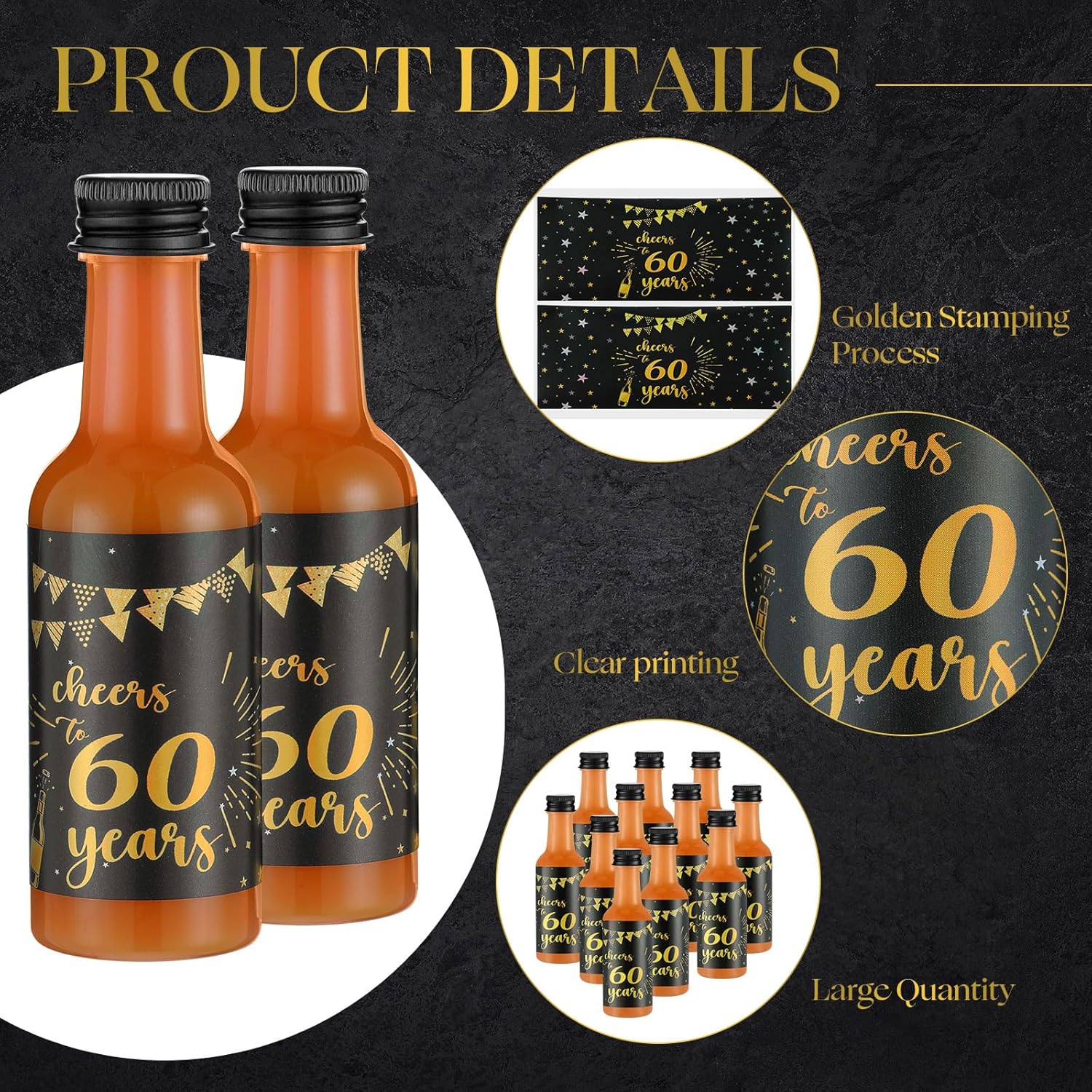 - Sufficient Party Package: this 60th party favors set includes 50 pcs mini liquor bottles, 50 pcs 60th birthday wine labels for bottles, and 2 pcs tiny funnels for bottles; Ideal for both men's and women's 60th birthday party celebrations