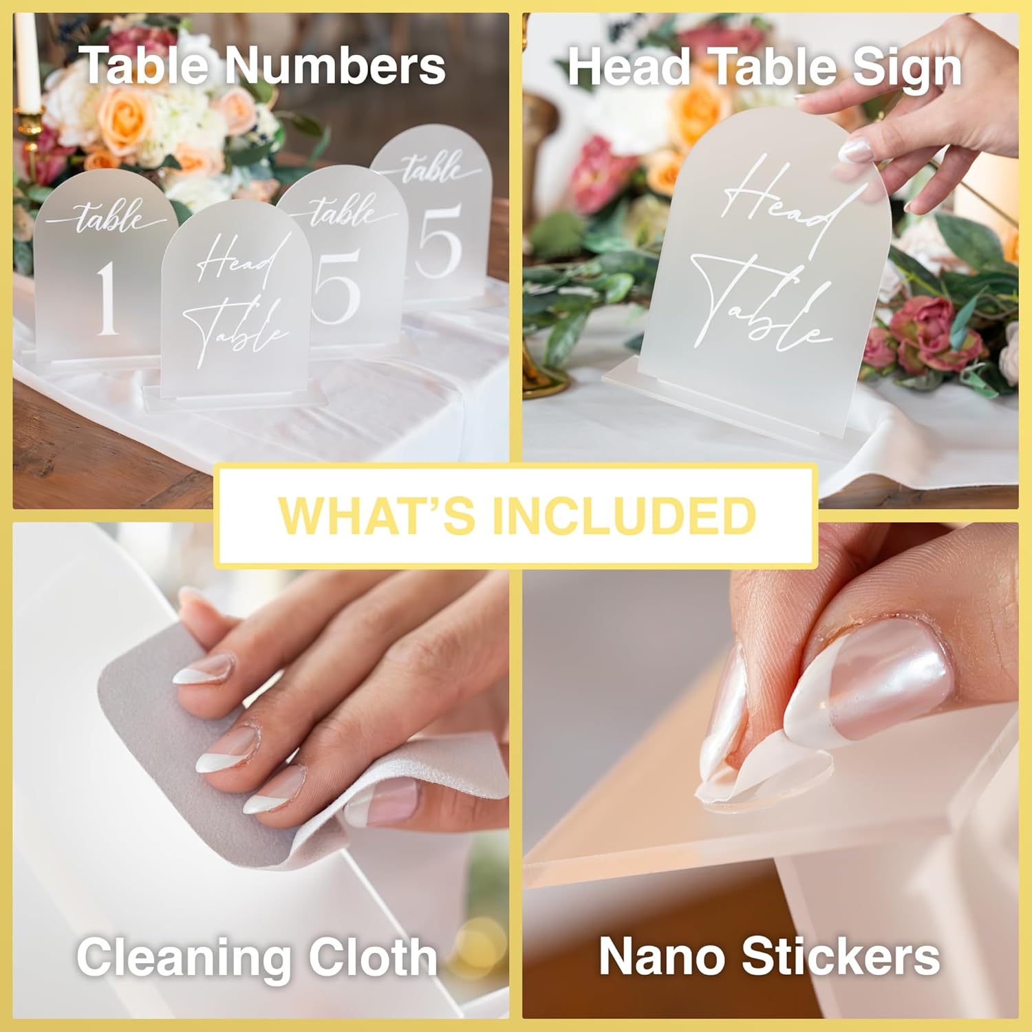 - โก๏ธ ๐พ๐๐๐๐๐๐๐พ๐๐๐ฟ ๐๐๐๐ ๐๐๐ผ๐๐๐๐ ๐ผ๐พ๐๐๐๐๐พ: Our ultra-durable acrylic wedding signs for seating chart come in four styles: 5" x 7" Clear with Gold Print, Clear with White Print, Black with White Print or Frosted with White Print, in Numbers 1-10, Numbers 1-15 or Numbers 1-20; Plus, all of our table number sets come with a Head Table Sign and a Gift table Sign
