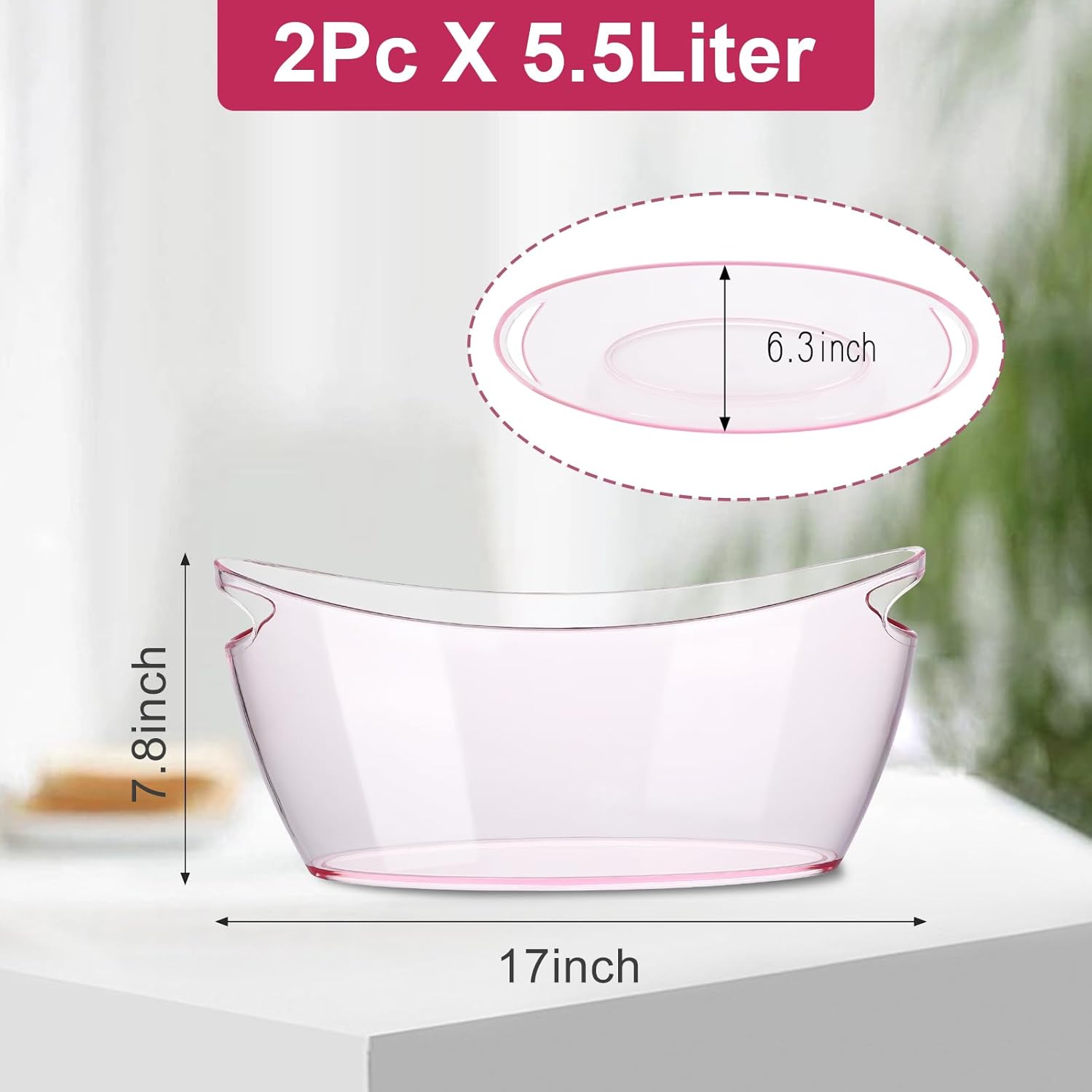 Ice Bucket 2 PCS,Acrylic Ice Buckets for Parties, Mimosa Bar Supplies Beverage Tub and Scoops for Champagne Beer Sparkling Wine Cocktails(5.5L)Extra Large Model (Clear) (pink)