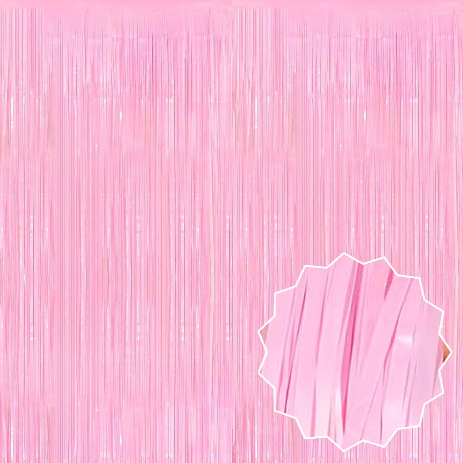 6 Pack Macaron Pink Foil Fringe Curtains Backdrop, 3.28 x 8.2 Ft Metallic Streamers Tinsel Curtains Background for Photo Booth, Birthday, Weddings, Carnivals, Graduation, Themed Party Decorations