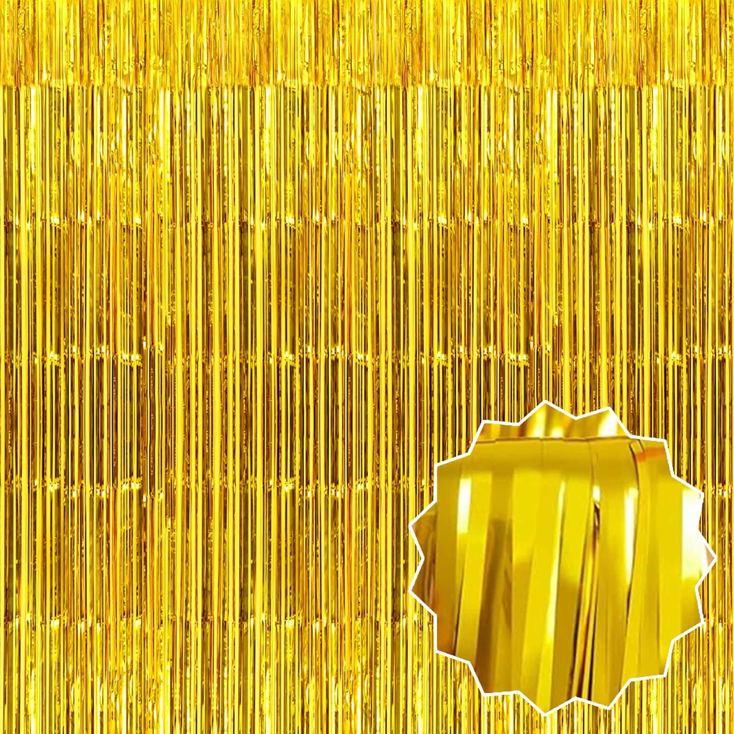 6 Pack Gold Foil Fringe Curtains Backdrop, 3.28 x 8.2 Ft Metallic Streamers Tinsel Curtains Background for Photo Booth, Birthday, Weddings, Carnivals, Graduation, Themed Party Decorations