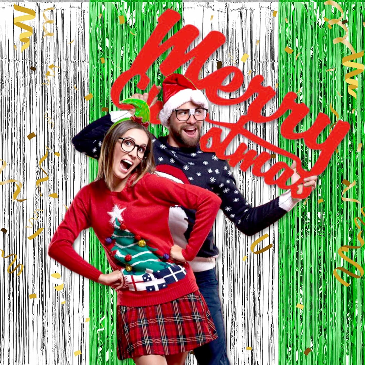 6 Pack Silver Green Foil Fringe Curtains Backdrop, 3.28 x 8.2 Ft Metallic Streamers Tinsel Curtains Background for Photo Booth, Birthday, Weddings, Carnivals, Graduation, Themed Party Decorations