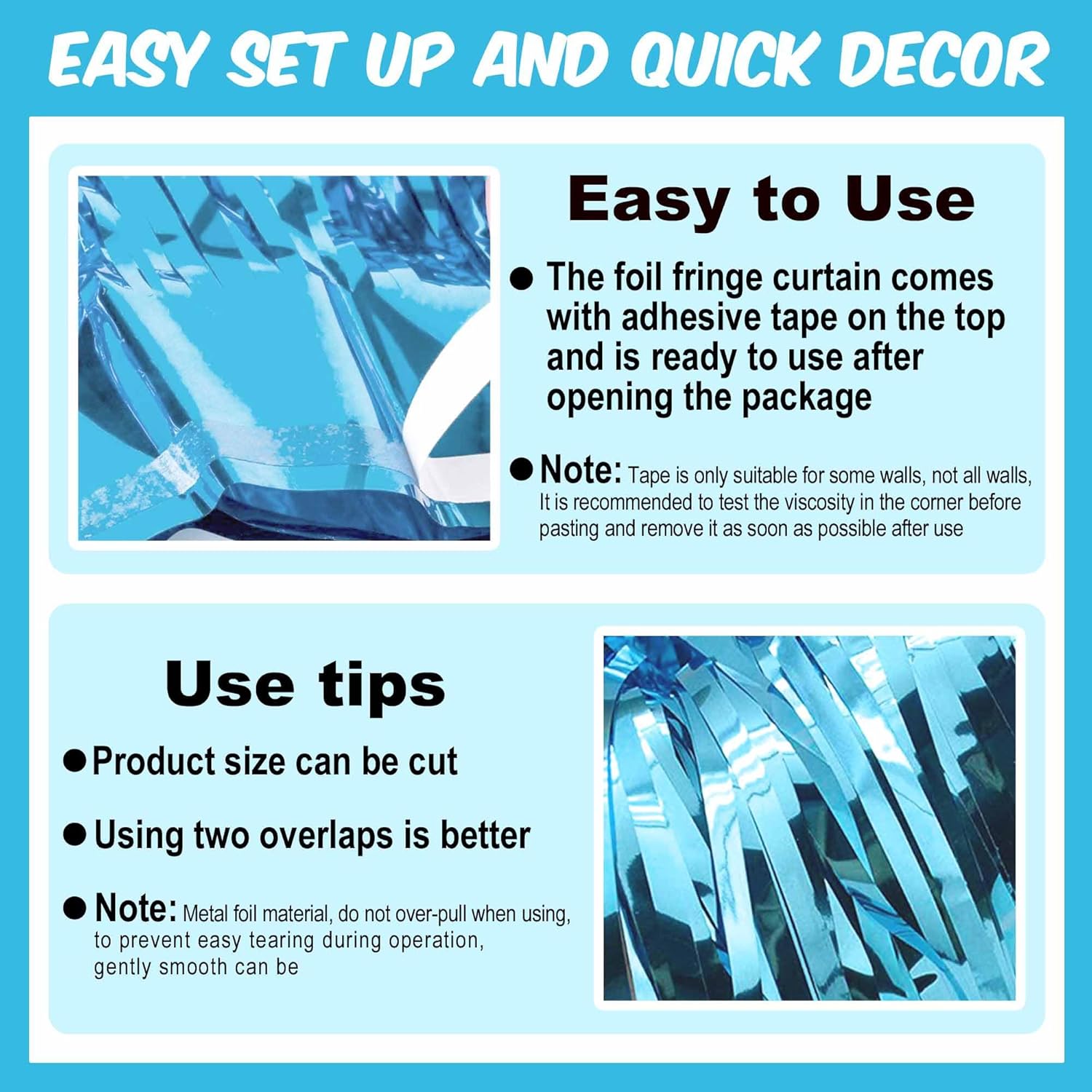 - Easy to Use: The tinsel foil fringe streamers curtain backdrop comes with double sided tape on the top, gently peel plastic strip off and it would be very easy to paste on smooth surfaces such as wall, window, table, door or anywhere you like