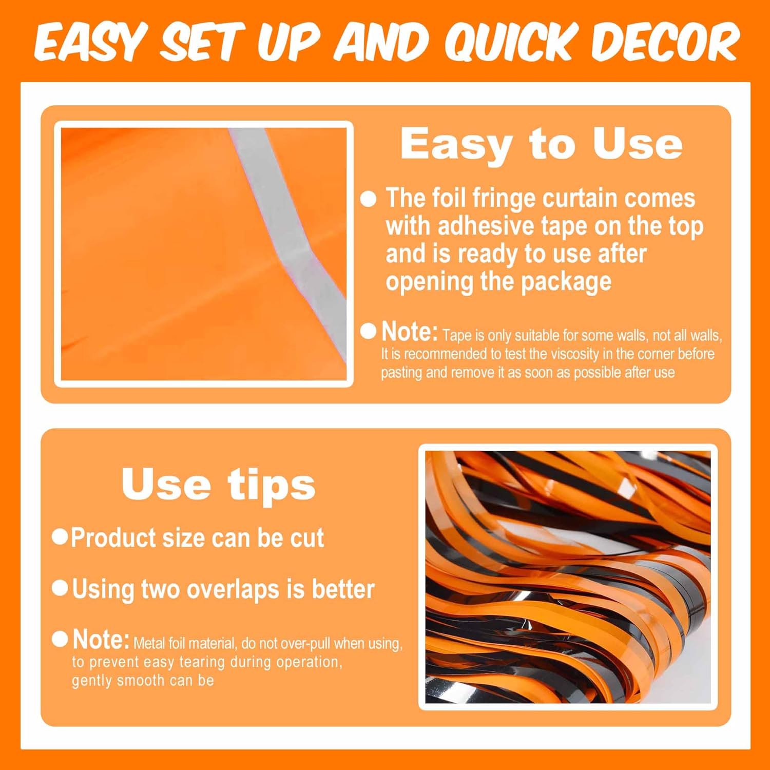 - Easy to Use: The tinsel foil fringe streamers curtain backdrop comes with double sided tape on the top, gently peel plastic strip off and it would be very easy to paste on smooth surfaces such as wall, window, table, door or anywhere you like