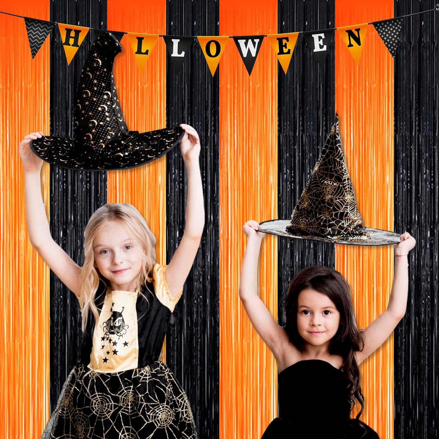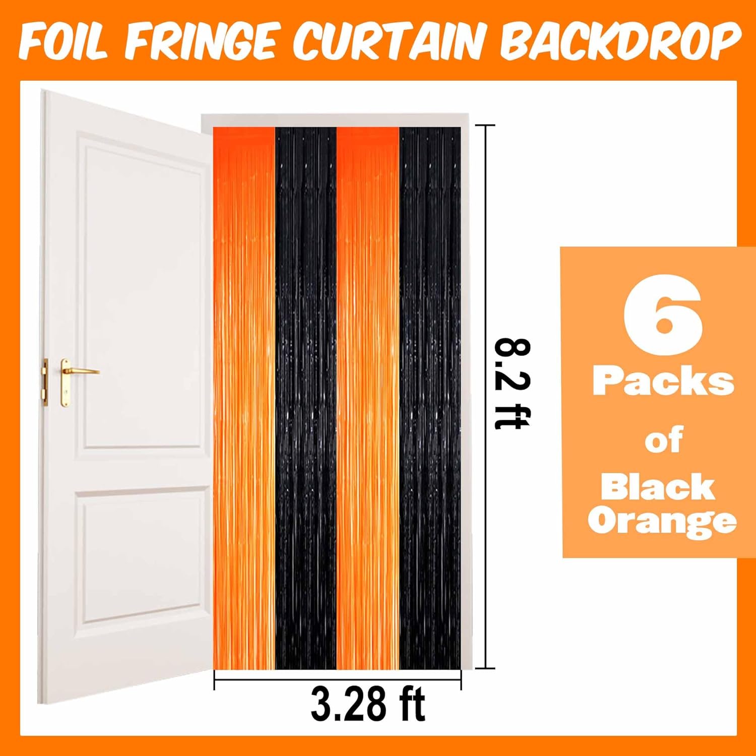 6 Pack Black Orange Foil Fringe Curtains Backdrop, 3.28 x 8.2 Ft Metallic Streamers Tinsel Curtains Background for Photo Booth, Birthday, Weddings, Carnivals, Graduation, Themed Party Decorations