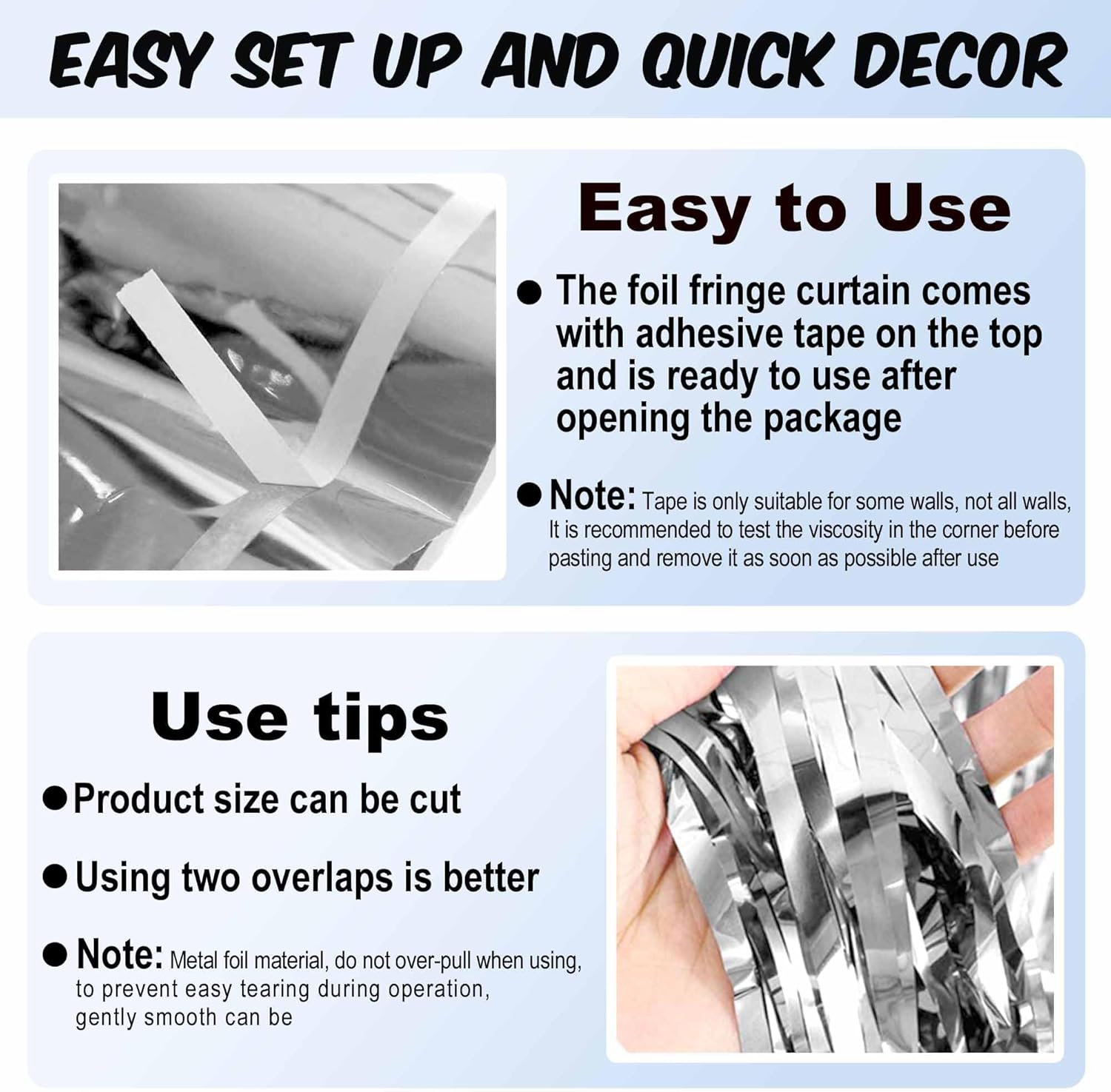 - Easy to Use: The tinsel foil fringe streamers curtain backdrop comes with double sided tape on the top, gently peel plastic strip off and it would be very easy to paste on smooth surfaces such as wall, window, table, door or anywhere you like