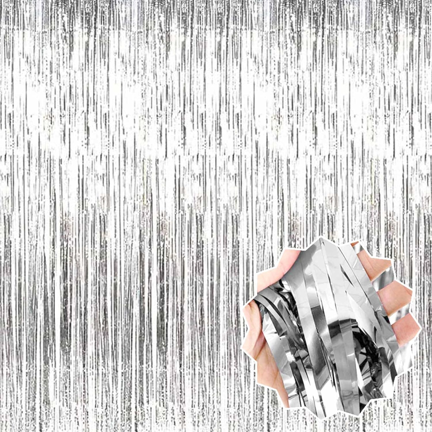 - Package and size: 3 Packs Foil Fringe Streamers Curtain Backdrop. The size is 3.28 x 9.8 feet. It's long, enough to fit any party occasion. Made of metallic foil material, shiny and creating dazzling effects, adding luxury and visual impact to the party