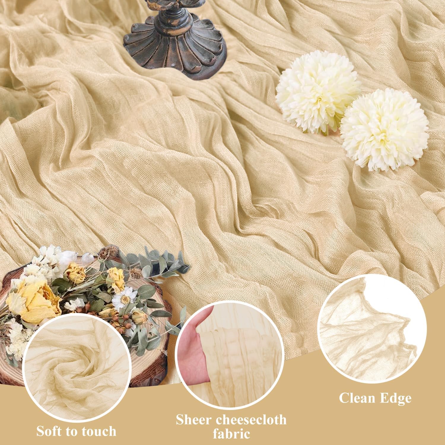 Asee'm Cheesecloth Table Runner 120 Inches Long Sand Boho Gauze Cheese Cloth Runner 10FT Rustic Sheer Fall Table Runners for Thanksgiving Wedding Party Baby Shower Decoration