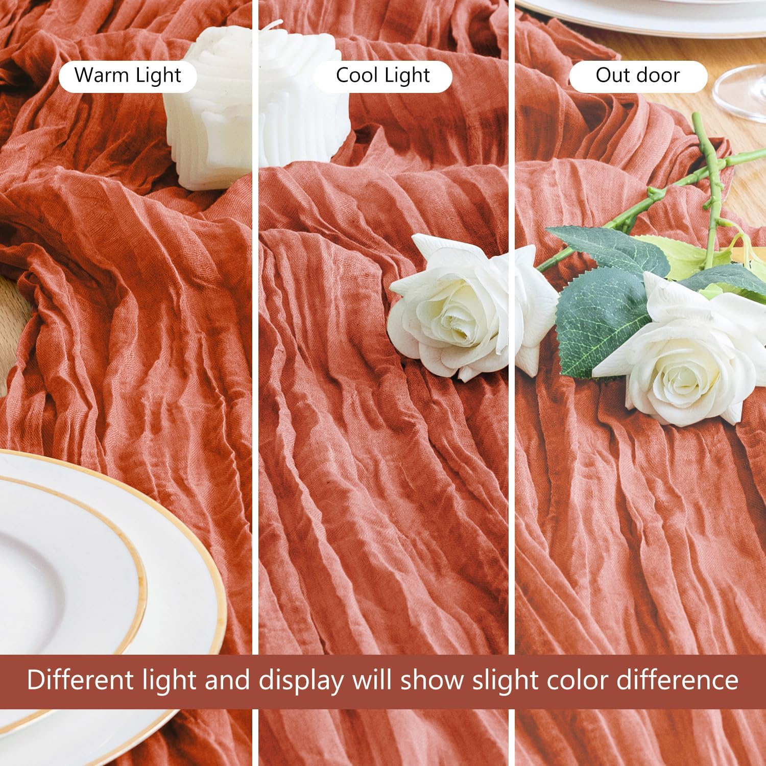Asee'm Cheesecloth Table Runner 120 Inches Long Terracotta Boho Gauze Cheese Cloth Runner 10FT Rustic Sheer Fall Table Runners for Thanksgiving Christmas Wedding Party Baby Shower Decoration
