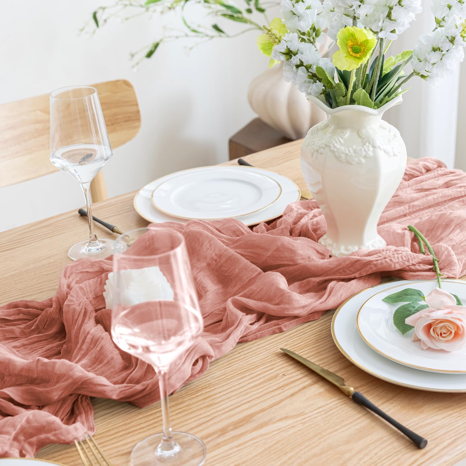 Asee'm Cheesecloth Table Runner 120 Inches Dark Rose Boho Gauze Cheese Cloth Runner 10FT Rustic Sheer Fall Table Runners for Thanksgiving Wedding Baby Shower Holiday Party Decoration