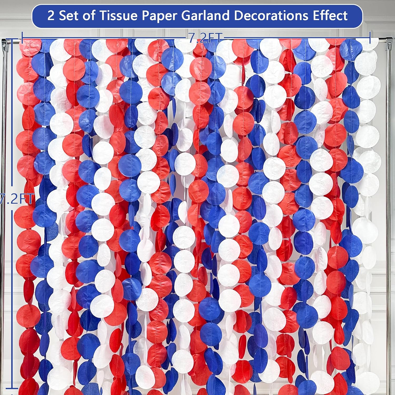 - 🔵PACKAGE CONTAINS- 15 packs of royal blue red and white circle dot party garland streamer,each string is 12.8 feet/3.9 meters with 30 pcs polka dots, Total is 58.5meters/192 feet.
