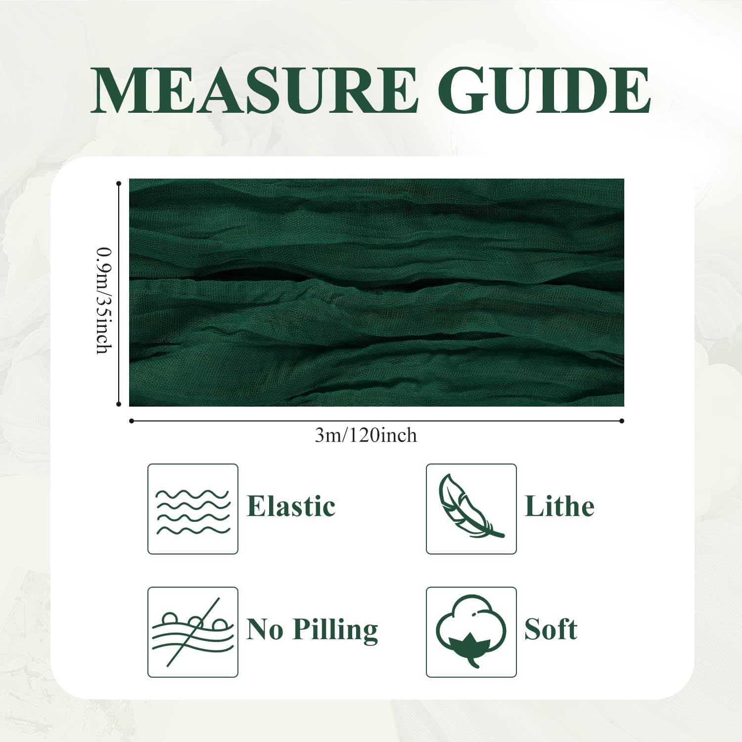 Asee'm 3PCS Table Runner Cheesecloth 10FT Emerald Green Boho Gauze Fabric Rustic Sheer Cheese Cloth Runners for Wedding Bridal Shower Party Spring Easter Decoration