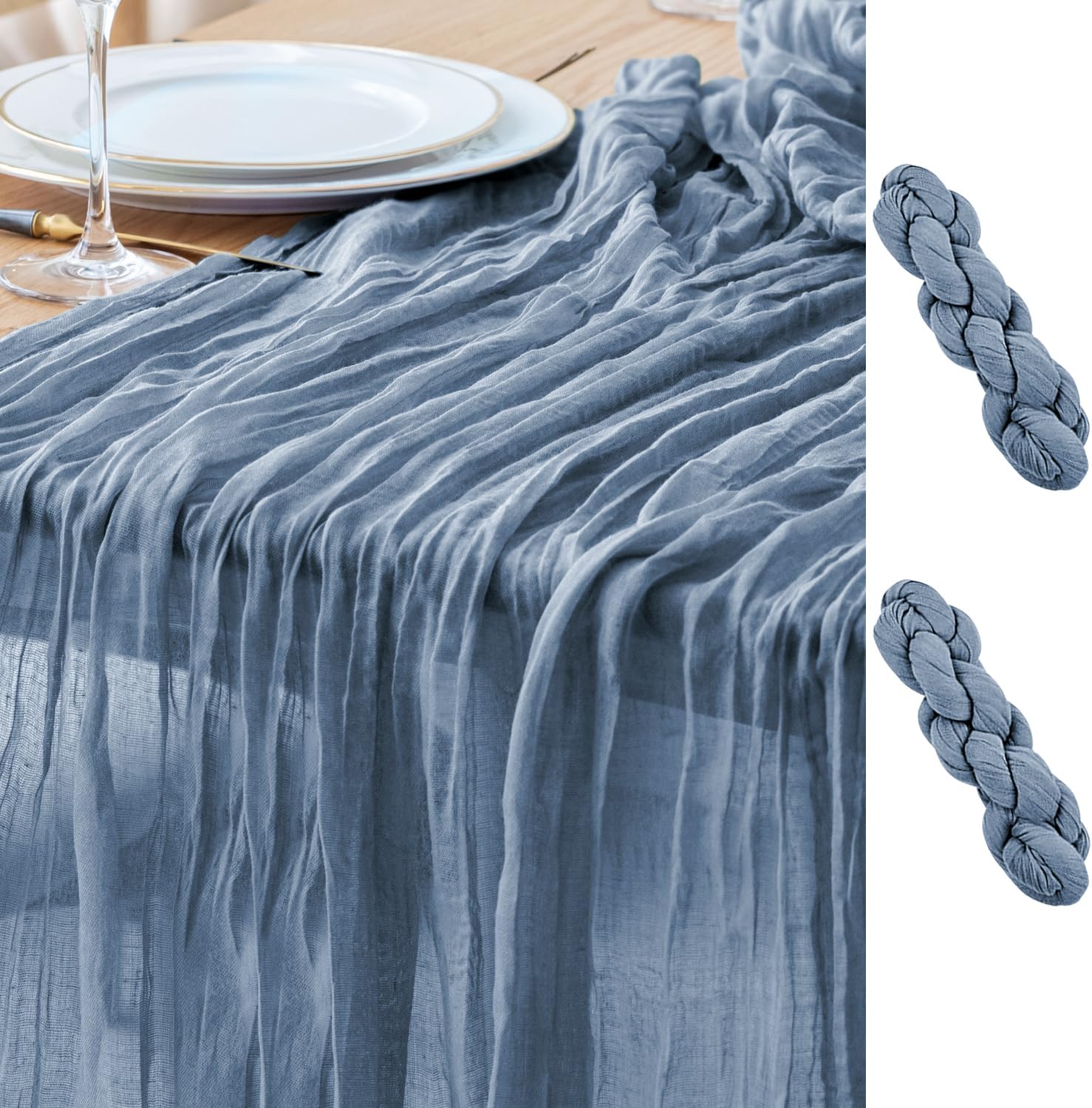Asee'm 2pcs Cheesecloth Table Runner 120 Inches Dusty Blue Boho Gauze Cheese Cloth Runner 10FT Rustic Sheer Table Runners for Centerpiece Wedding Baby Shower Spring Easter Decoration