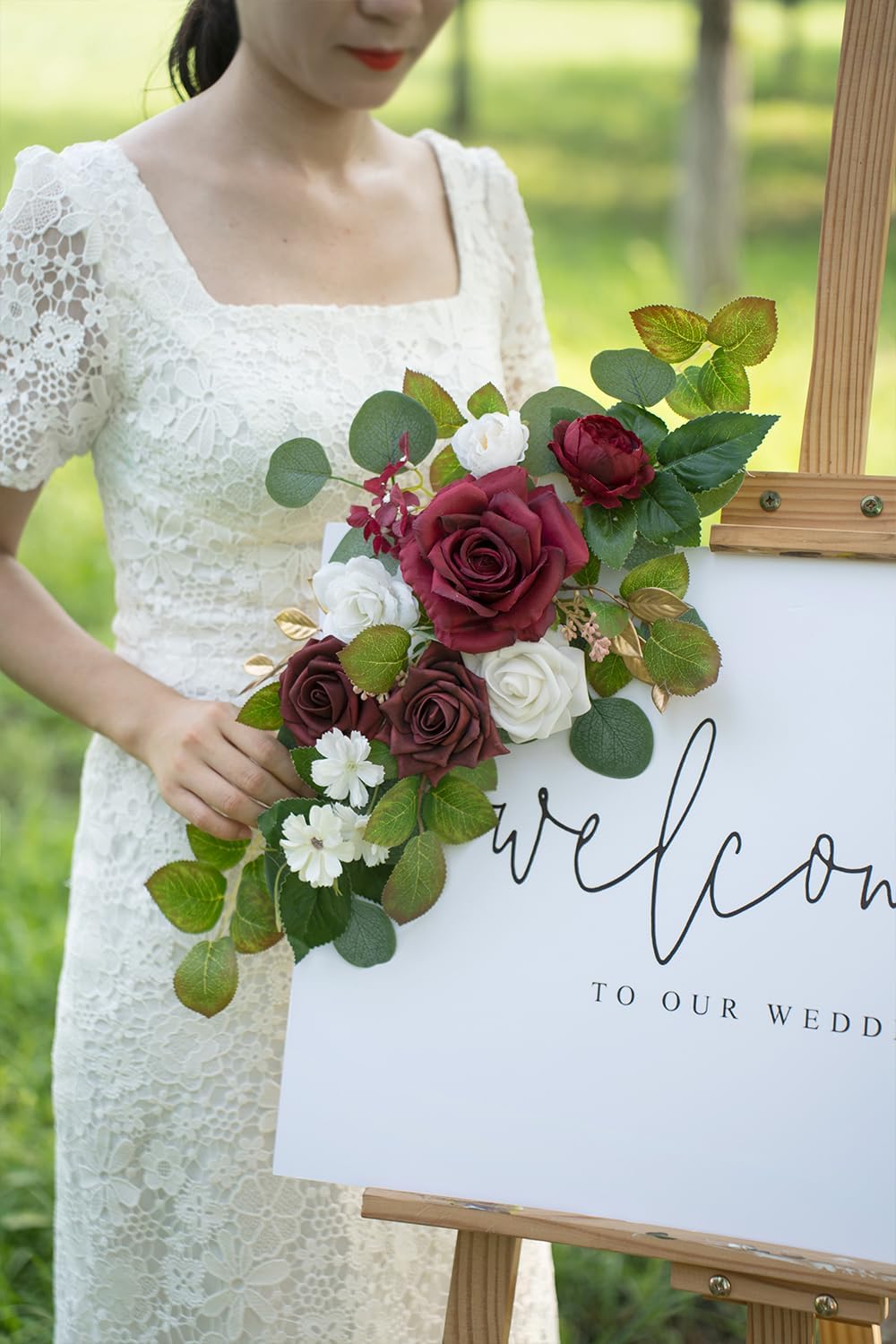 WEIERYUE(Pack of 2 Artificial Flowers Decorations,Artificial Arch Backdrop Garlandfor Ceremony Party Reception Entrance Welcome Easel Door Floral Decor Wall Home Entryway Outdoor(Wine red)