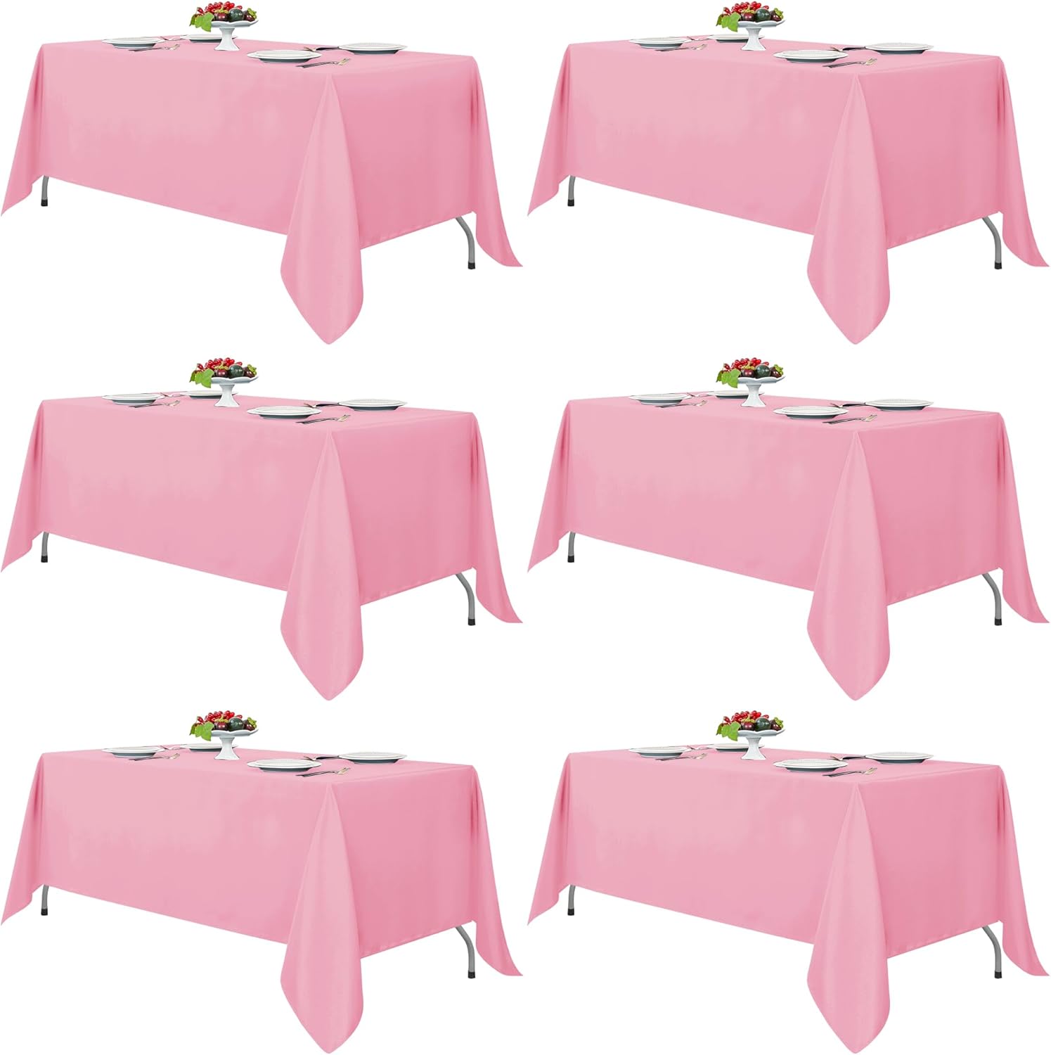 Fitable Pink Rectangle Tablecloths for 6 Foot Tables, 6 Pack - 70 x 108 Inches - Stain Resistant and Washable Table Clothes, Polyester Fabric Table Covers for Wedding, Party, Banquet, Buffect