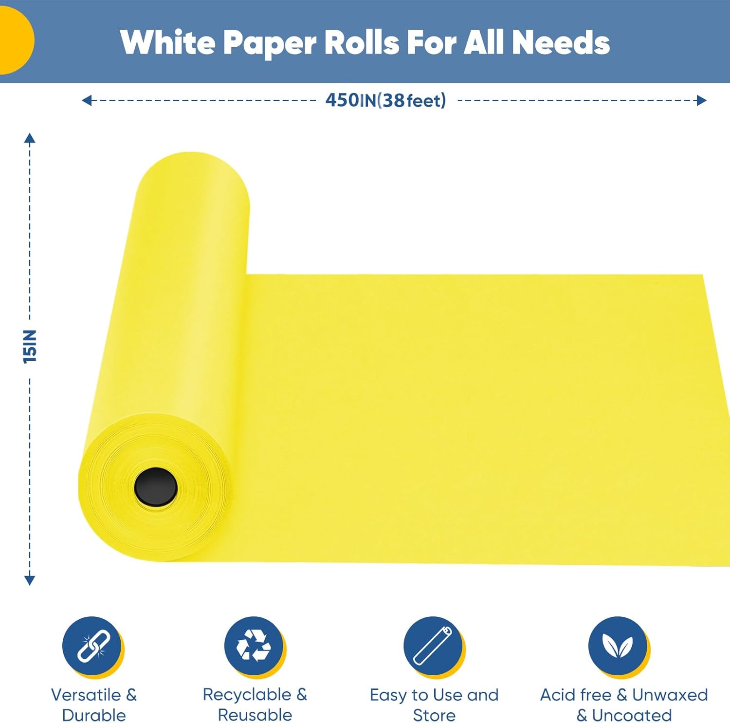 Yellow Wrapping Paper Craft Paper Kraft Paper Roll 15"x450", Bulletin Board Paper, Arts & Crafts, Gift Wrapping Packing Painting Drawing Paint Easel Poster Chart Decorative Paper, Kids Art Supplies