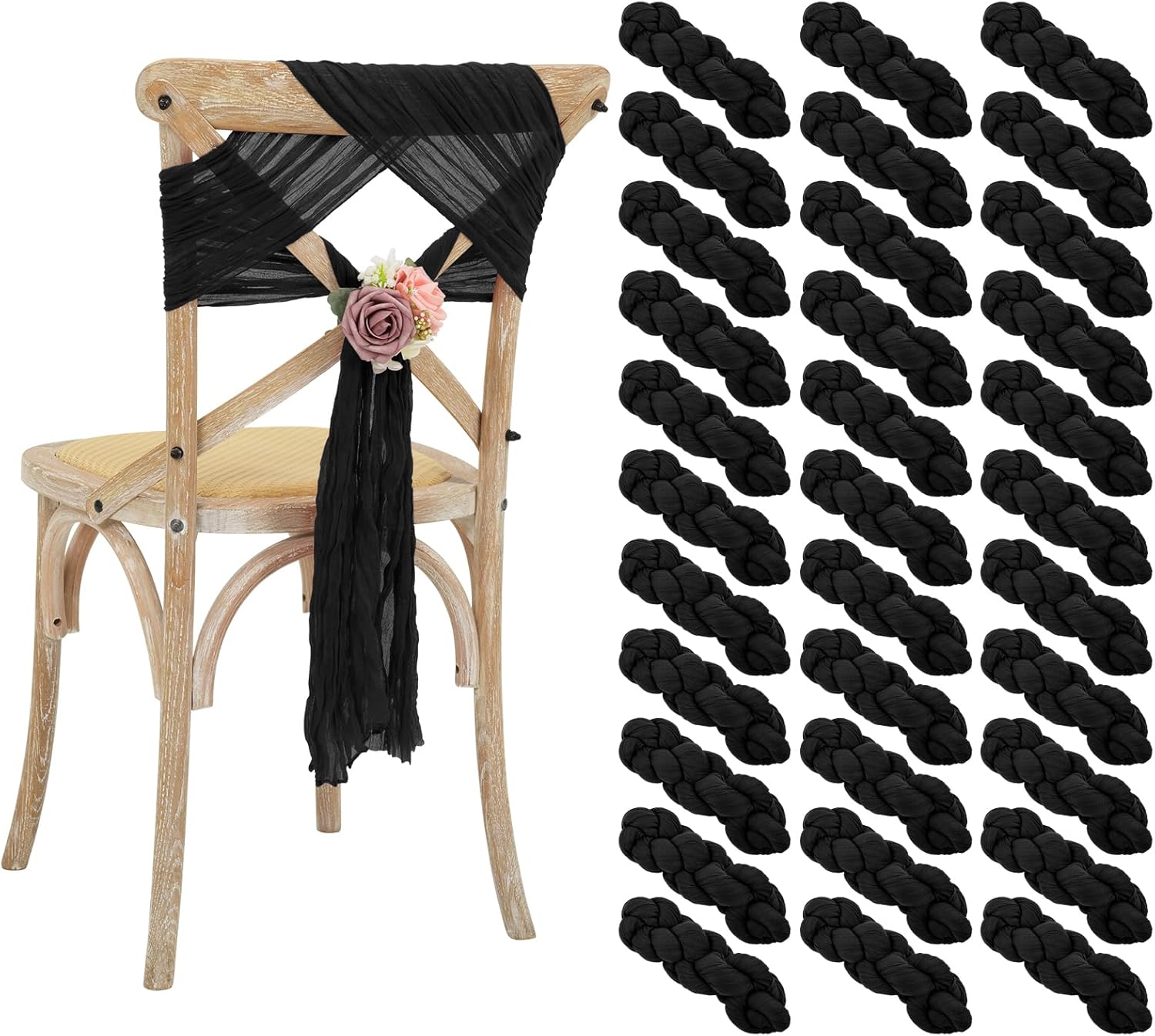 - 【Package includes】You will receive 50 pieces black cheesecloth chair sashes, nough quantity for your daily needs. and they will make your simple chairs more elegant, high-quality cheesecloth chair bows fabric beautifully transforms chairs for a stunning display that makes each guest feel regal.