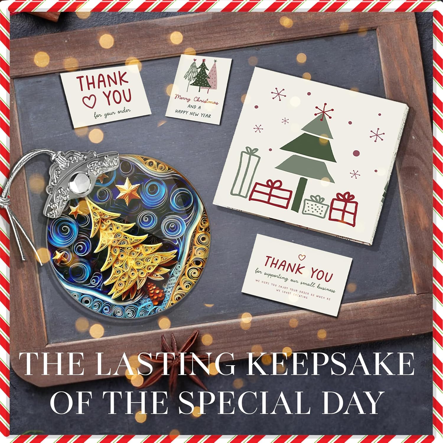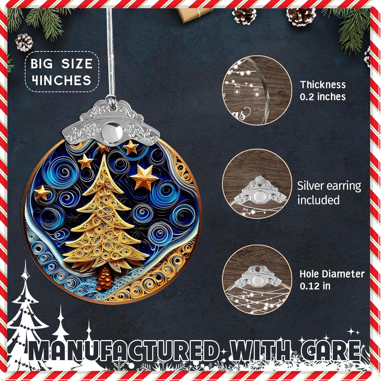 Christmas Ornament 2025, Christmas Tree Round Shape, 4 Inch Acrylic Ornament Art, Holiday Decoration, Car Interior Decor, Holiday Ornaments (Quilling Christmass Tree)