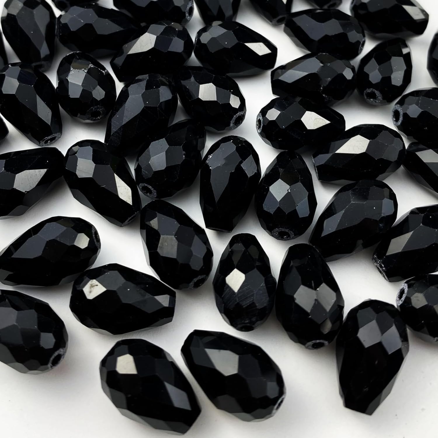 50pcs 10x15mm Teardrop Crystal Glass Beads Vertical Hole Faceted Glass Teardrop Spacer Beads for Bracelets Necklace Earring DIY Jewelry Making Craft(Black)