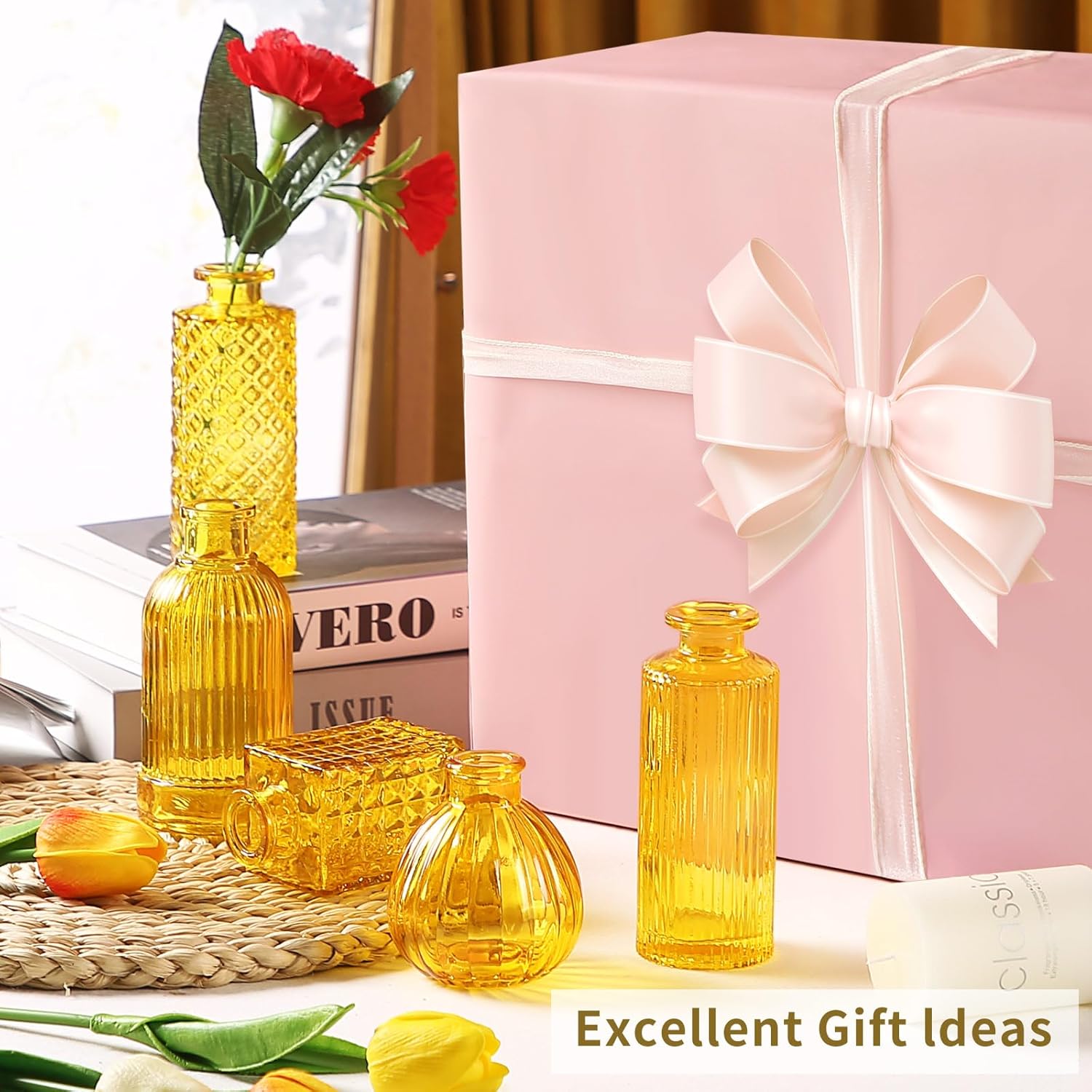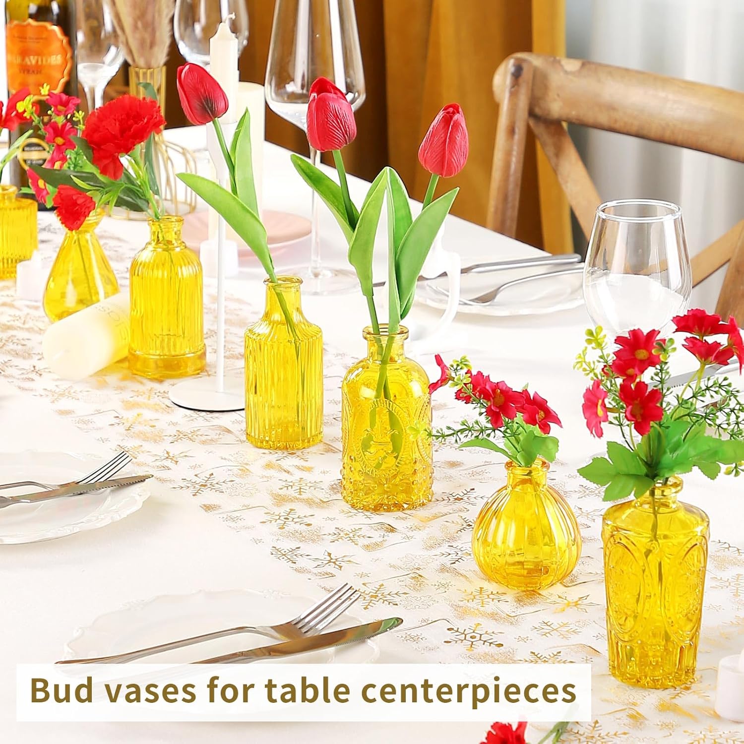 - Elegance Redefined: These mini glass vases in yellow serve as perfect vessels for real or artificial flowers. Each small yellow vase accommodates a single short stem or two petite flowers, presenting a sophisticated and graceful appearance even when displayed individually. Their delicate shapes and intricate patterns make for captivating décor accents, even without floral arrangements.
