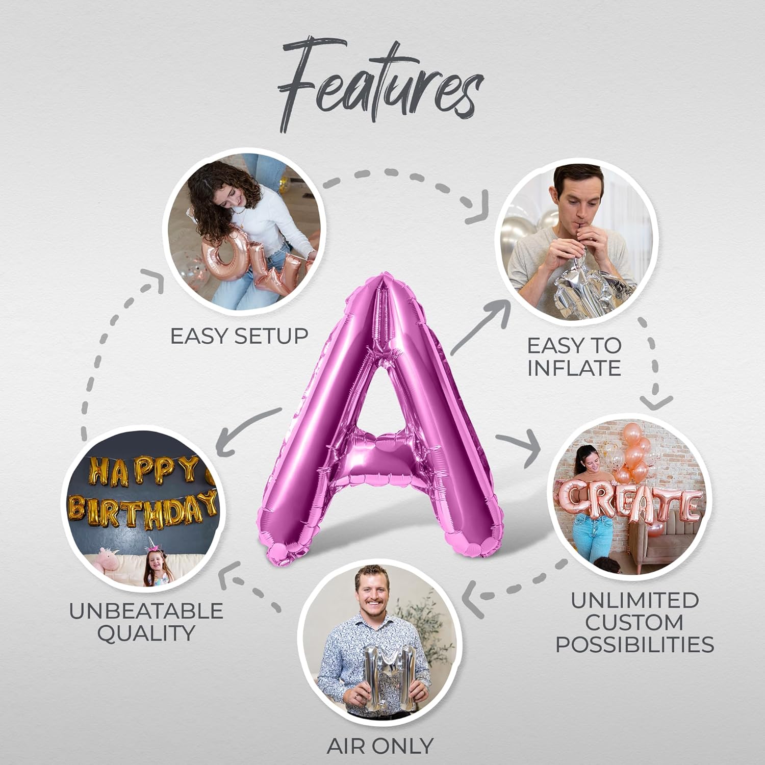 - Included Components : Letter Balloons, Straw, Ribbon and Instructions