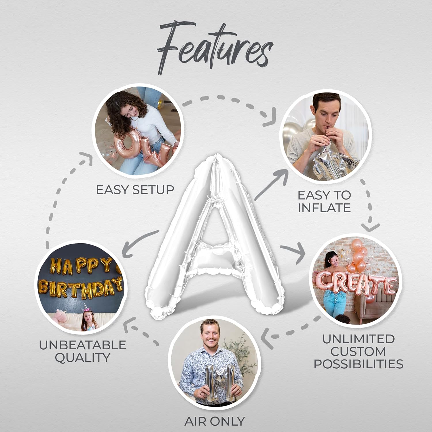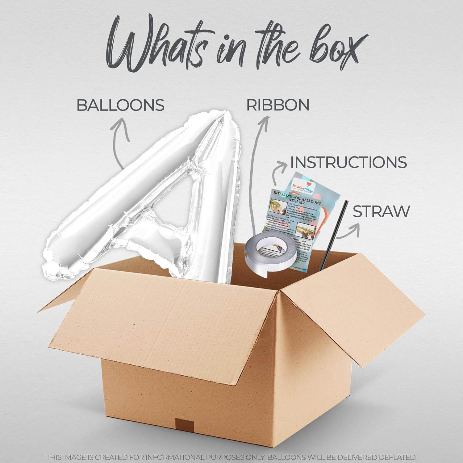 - Included Components : Letter Balloons, Straw, Ribbon and Instructions