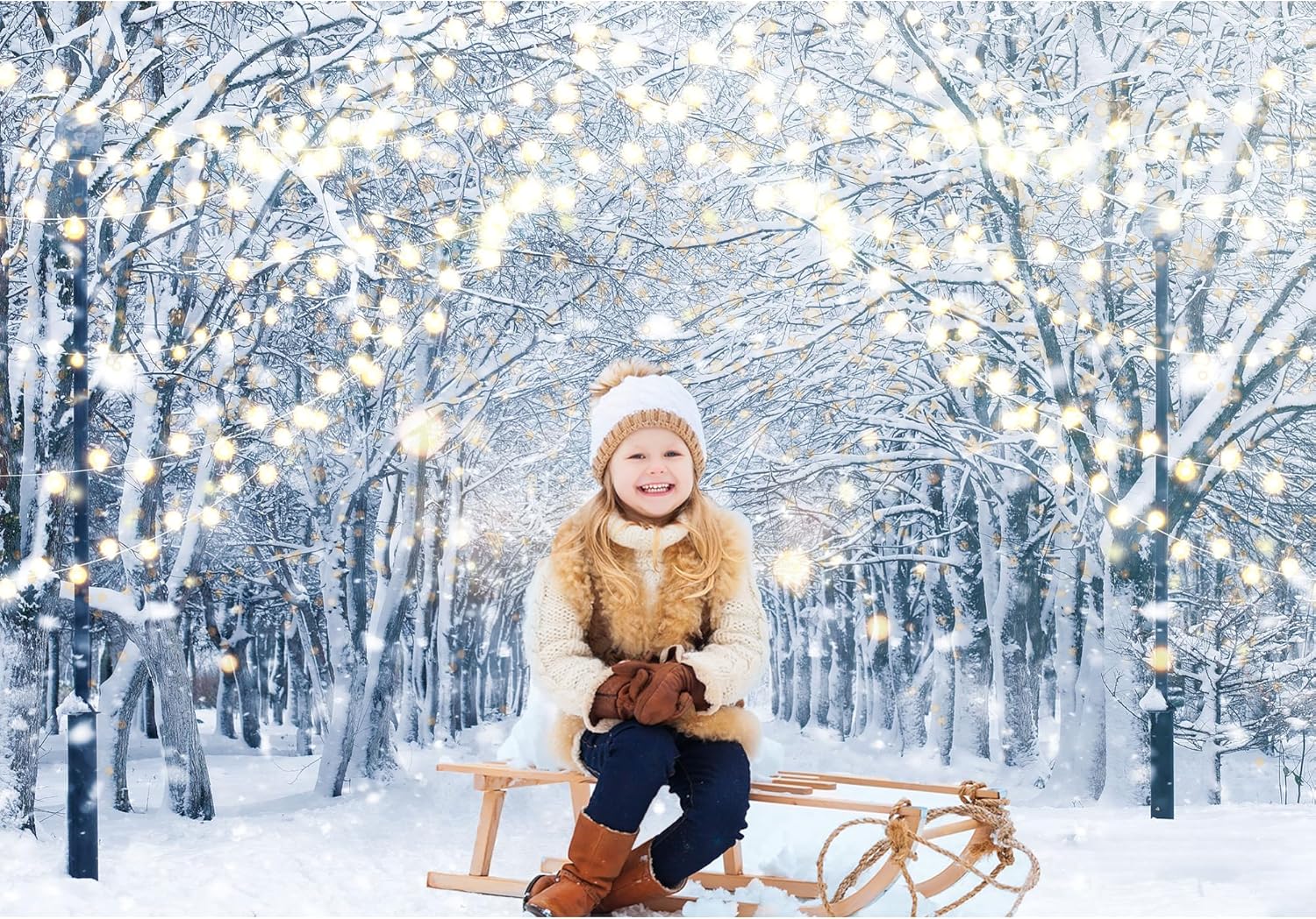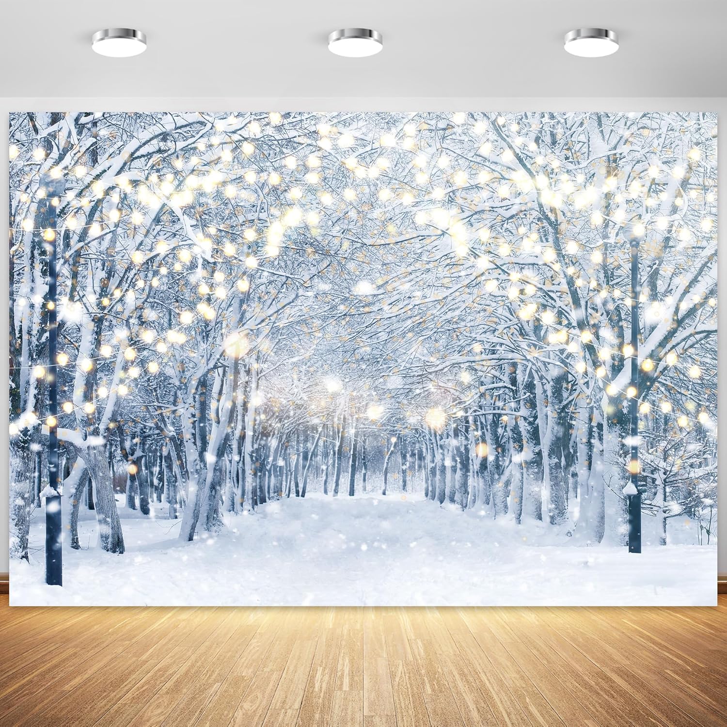 8x6FT Winter Snowy Scene Photography Backdrop Winter Wonderland Landscape Snowflake Tree Snowy Background Bokeh Glitter White Snow Forest Party Photo Booth Studio Props