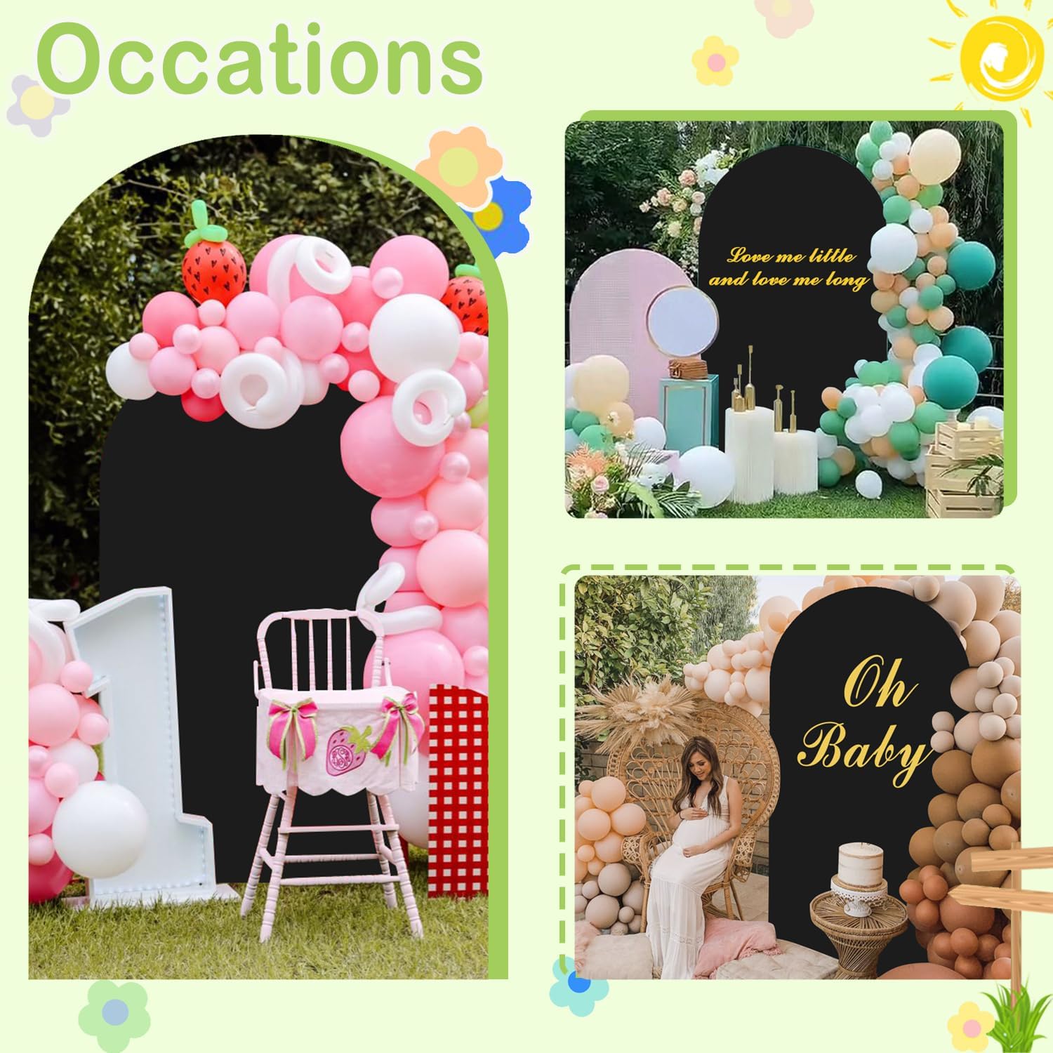 - ăUse and care - Black Arch Coveră: This portable arch backdrop stand cover can be easily carried anywhere and set a backdrop decoration in no time for a quick party setup,The spandex arch cover features wrinkle resistance, and easy to put on and take off.When you install the arch background cover on the shelf, the creases will disappear, you can also remove the creases by ironing. Easy to clean - hand or machine wash, dry and reuse
