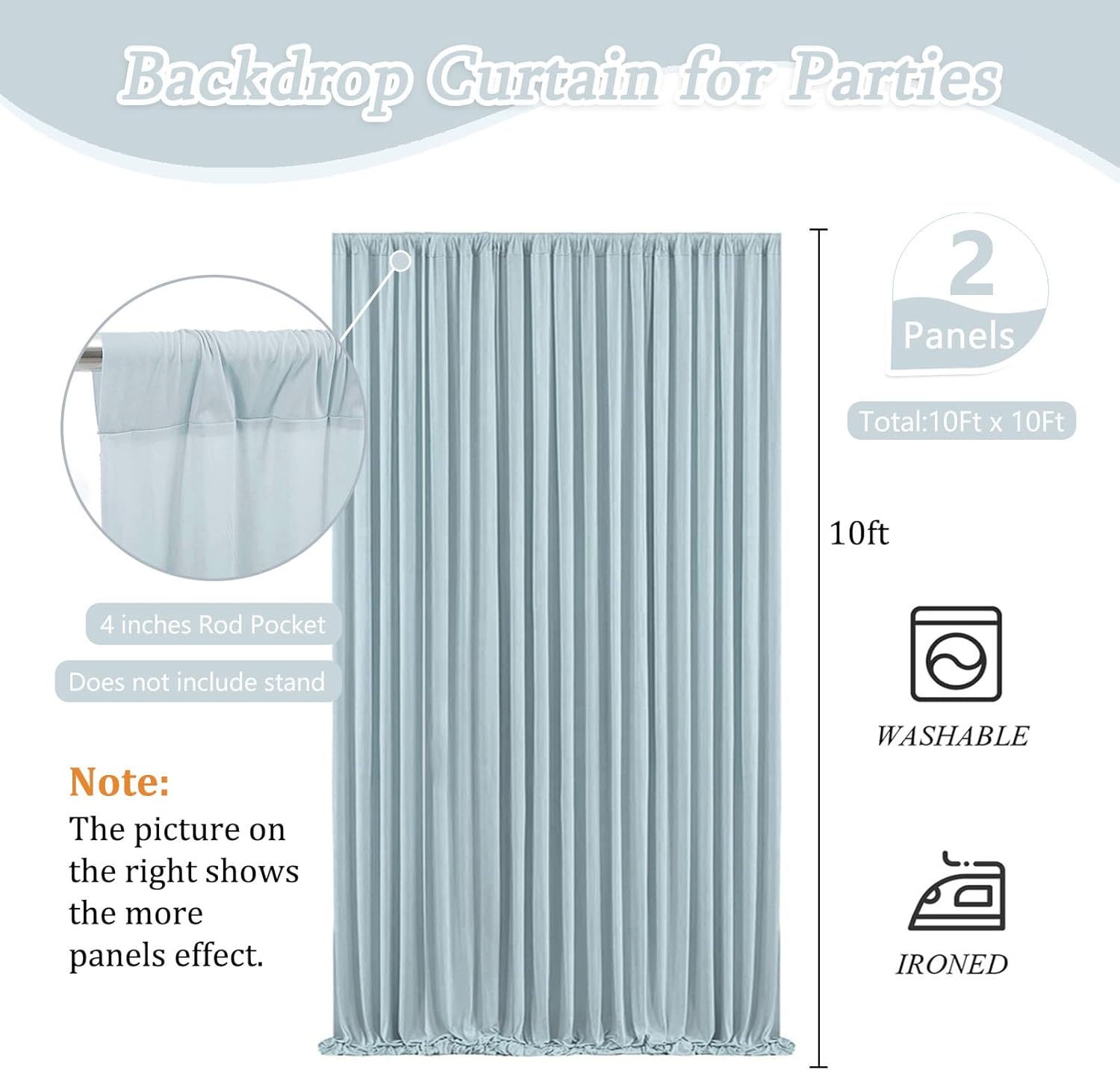 - 【Easy to Use】Both hand wash and machine wash is OK, with rod pocket across the top for easy hanging on a pipe or backdrop stand. Pay attention to keeping the photo drape backdrop curtains panels clean when hanging, otherwise it will affect the appearance.