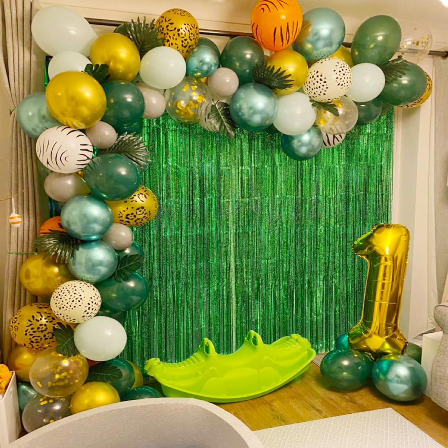 - 🎉SAFE & SHINY MATERIAL- This Glitter green tinsel backdrop is made of high-quality shiny tinsel, non-toxic, odorless, and non-fading, safe for families with children and pets. Just transform your home into a shining streamers happy birthday decorations, and enjoy the party.