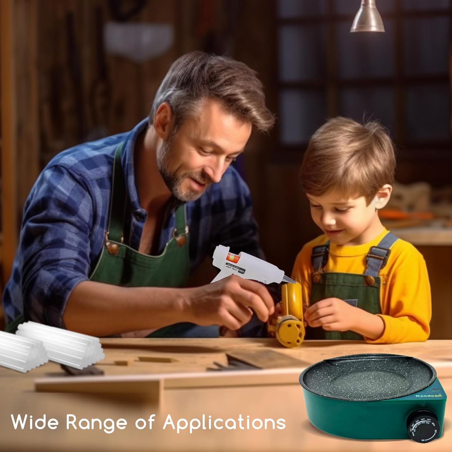 - Temperature control: Our glue melting pot can be set heating temp from 212°F to 392°F by using knob. You can melt all types of glue with our pot, such as Keratin glue yellow, Italian glue white and yellow Keratin Bond glue sticks.