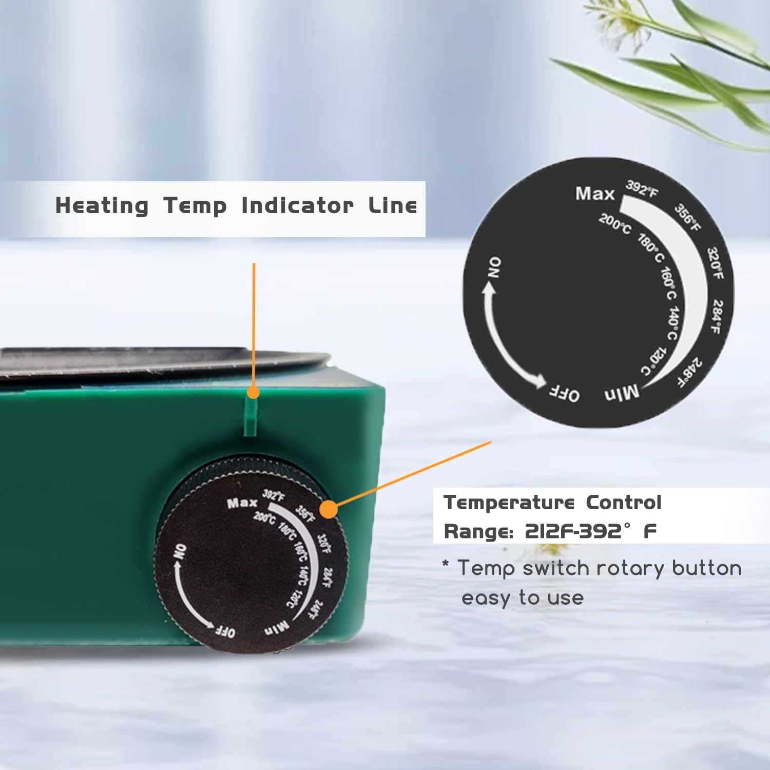 - Temperature control: Our glue melting pot can be set heating temp from 212°F to 392°F by using knob. You can melt all types of glue with our pot, such as Keratin glue yellow, Italian glue white and yellow Keratin Bond glue sticks.