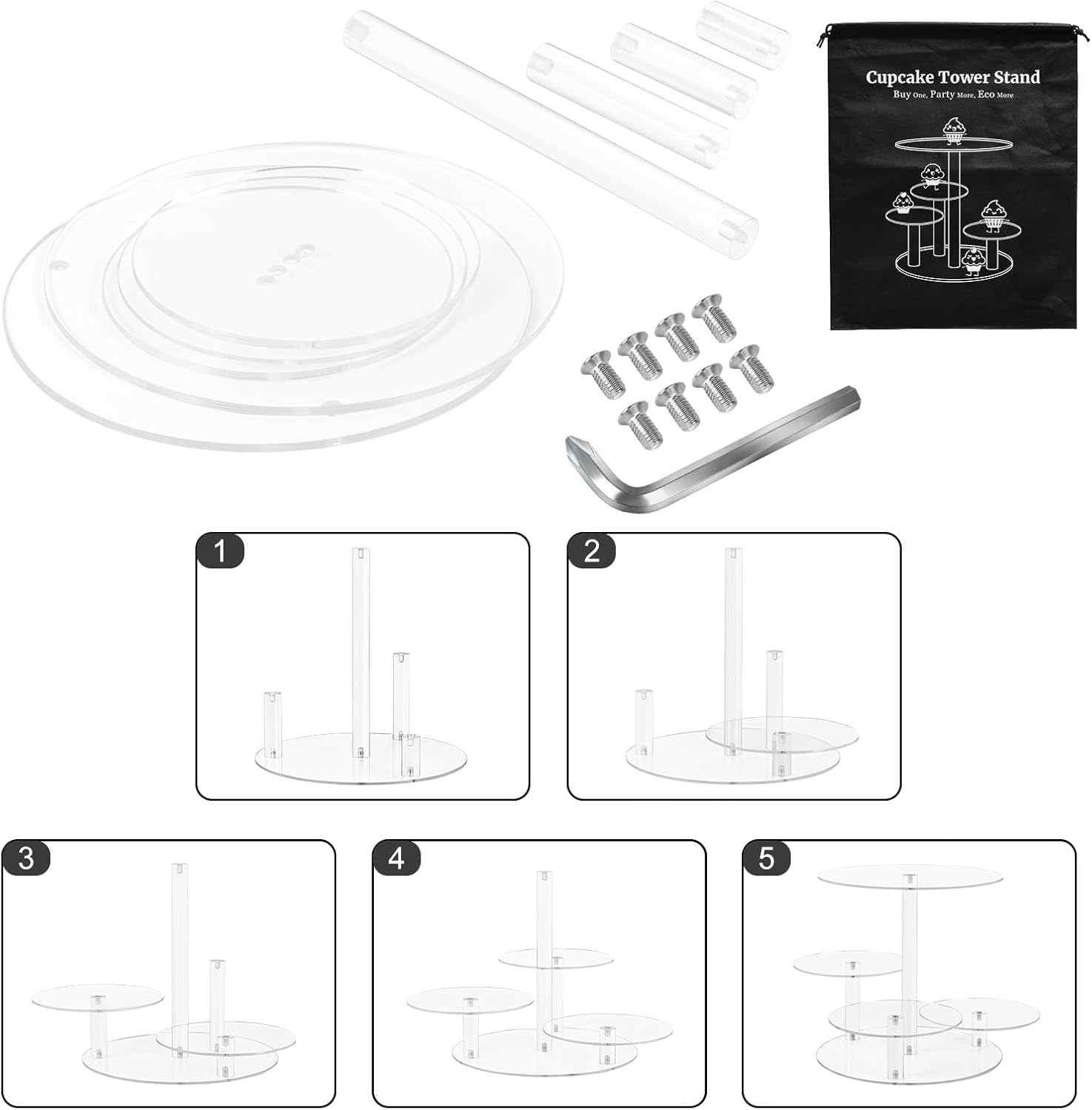 - ๐[Premium Cupcake Stand] This tiered cake and cupcake combo stand is made of 4mm thick premium acrylic which has a solid construction and unique design. The edges of the acrylic are perfectly clear and well polished, safe to use.
