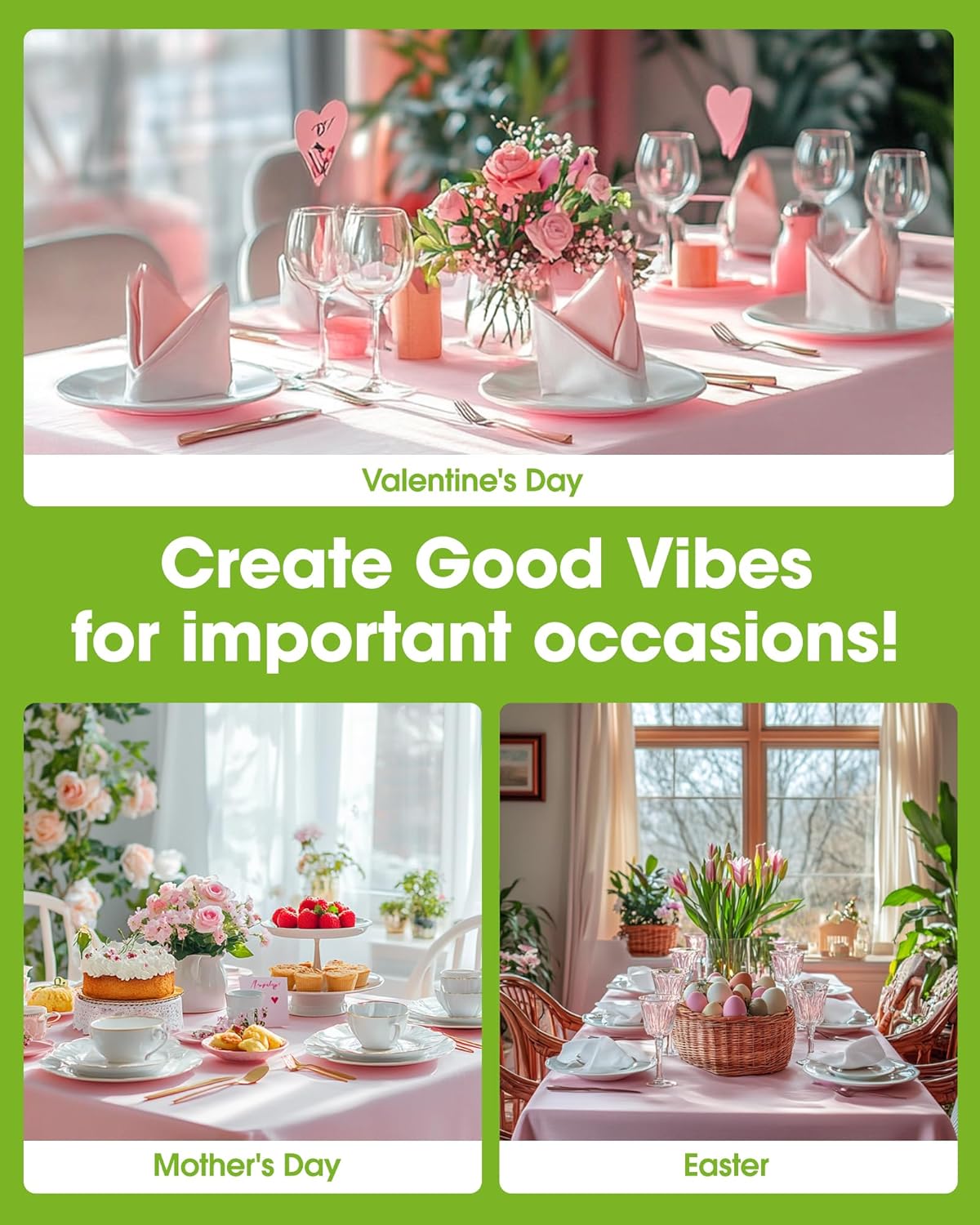 Pureegg Plastic Table Cloth Disposable 10 Pack, 54 x 108 Inch Table Cloths, Easter Party, Valentines, Mothers Day Decorations, Tablecloths, Rectangle, Pastel Plastic Cover, Leakproof & Sturdy, Pink