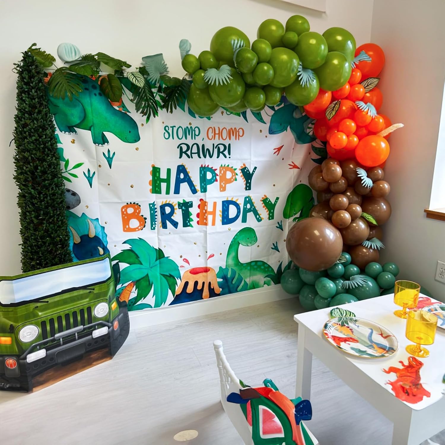 Sage Green Orange Balloons Set, 12 Inch Olive Green Orange Balloons with Nude Coffee Green Brown Latex Balloons Dinosaur Theme Party Decoration for Jungle Safari Wild Woodland Garden Outdoor Party