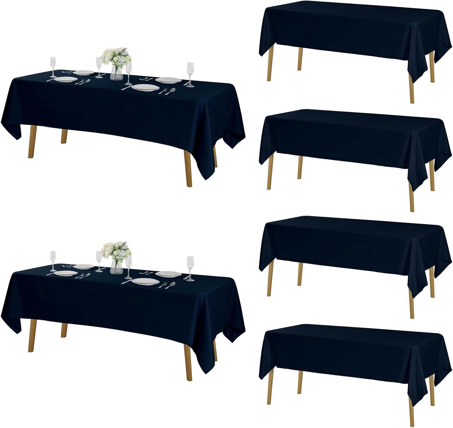 Fokitut 6 Pack Rectangle Tablecloth, 60x102 Inch, Stain Resistant and Wrinkle Polyester Table Cloth, Fabric Table Cover for Kitchen Dining, Wedding, Party, Holiday Dinner-Navy
