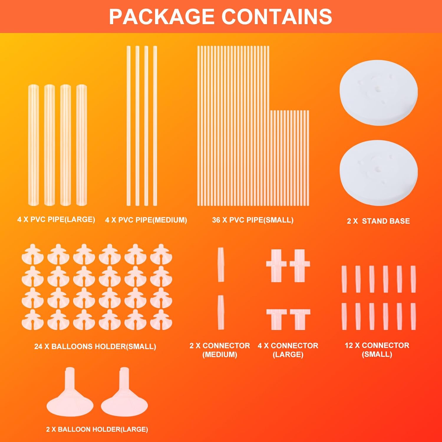 - [Package Included] - Complete Set for Your Convenience: Our KATBUU balloon arch kit includes 2 sets of balloon stands (Not include balloons), featuring 44 unattached balloon sticks, 26 balloon holders, 4 seven-hole connectors, 14 connectors, 2 water-filled base, 2 floor nail, 4 double-sided tape, and 1 set of user instructions. No need for a rental helium tank - create stunning balloon displays right at home. This is sure to make your PARTY special.