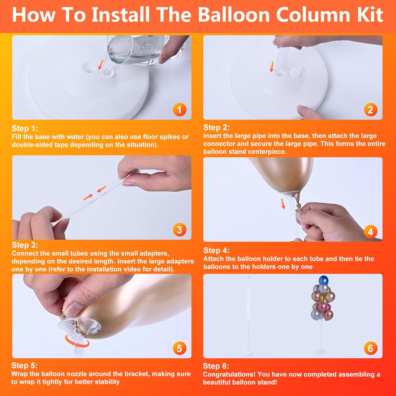 - [DIY Design] - Quick and Easy Assembly: It Only Takes A Few Minutes to Assemble A Beautiful Balloon Decoration. We recommend using 10-12 inch balloons to create stunning balloon arches for your party. The balloon stand can reach a maximum height of 62 inches, and you can adjust the height by reducing the tube. Note that the balloon arch kit does not include balloons. You can search KATBUU Balloons to get party balloons.