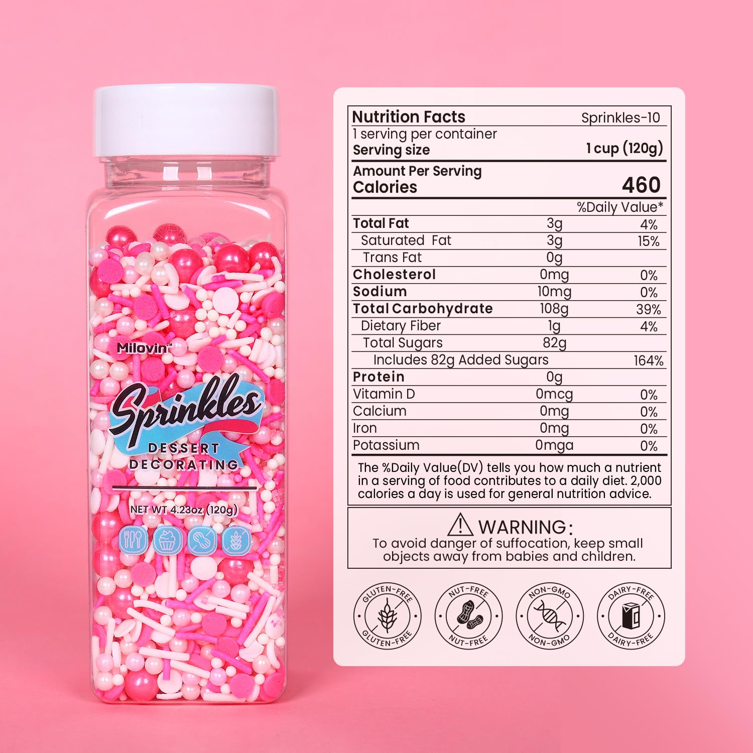 - Edible Pink Sprinkles for Cake Decorating: A bottle of pink sprinkles mixes(120g/4.23oz), whether it's cakes, cupcakes, cookies, ice cream, cake pops, brownies, or any dessert you can dream of; our edible pink sprinkles are your go-to for that extra dash of cheer.
