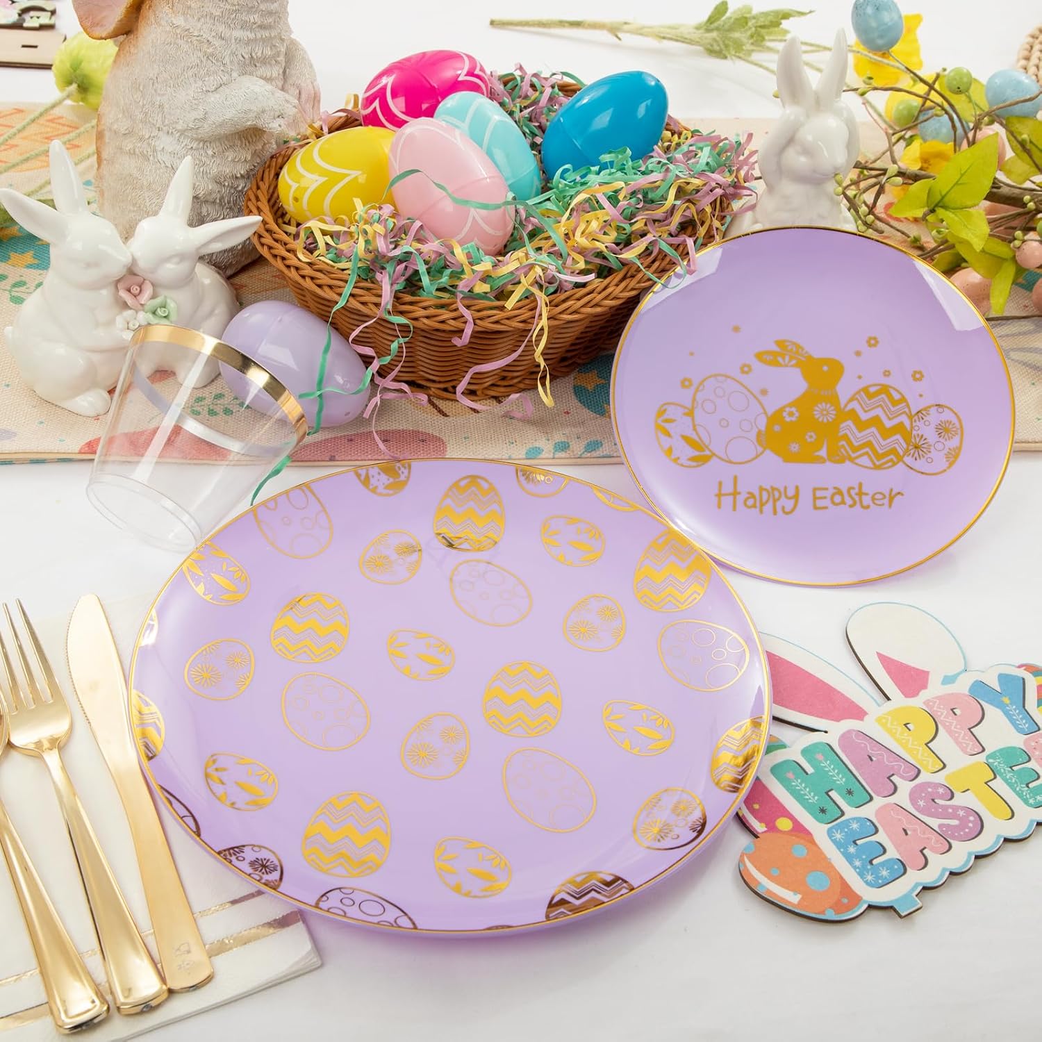 - EASY TO CLEAN: Easter plates are great party decorations, you can throw away these Easter party plates after the party and enjoy more time with friends and family. You can also choose to wash and reuse these purple and gold plastic plates.