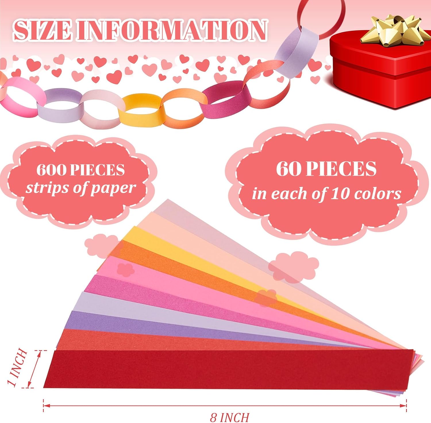 Lincia 600 Sheet Halloween Paper Chain Garland, Construction DIY Crafts Chain Strip for Fall Thanksgiving Party Decor, 1x8 Inch with Double Sided Tape (Valentine)